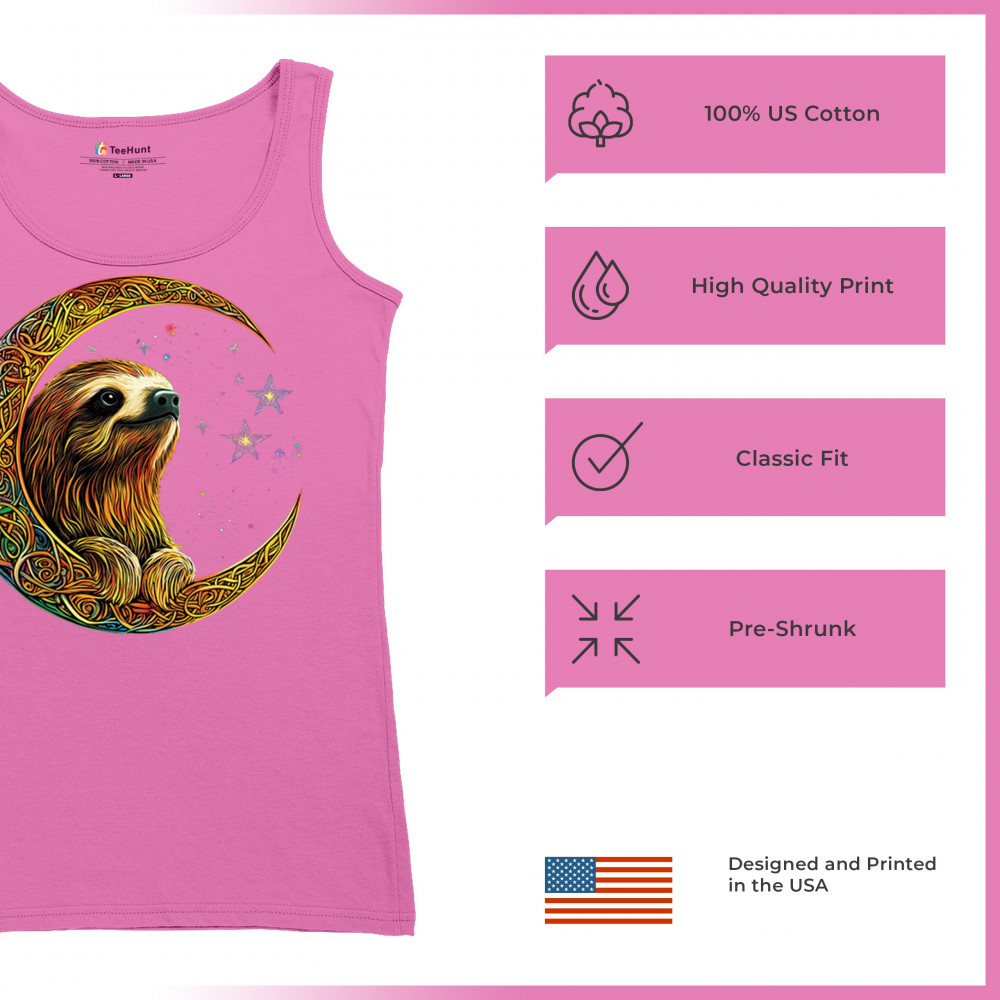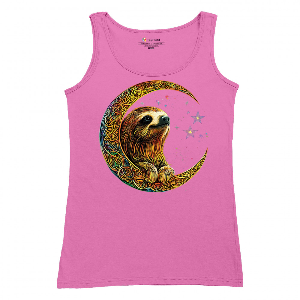 Celebrate peace and presence with this stunning sloth design cradled in a gold Celtic crescent moon. Surrounded by a vibrant starry sky, the image blends jungle whimsy with tribal patterns and mystical vibes. A perfect design for lovers of fantasy animals, mindfulness, and slow living. A beautiful tribute to spiritual stillness and cosmic calm.