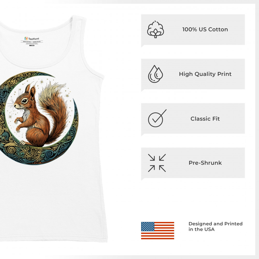 Celebrate agility, awareness, and forest wisdom with this magical red squirrel design. Nestled in a green-gold Celtic crescent moon and backed by a starry cosmic sky, this piece merges natural energy with tribal patterns and celestial wonder. A unique design for animal spirit believers, forest wanderers, and fantasy nature fans.