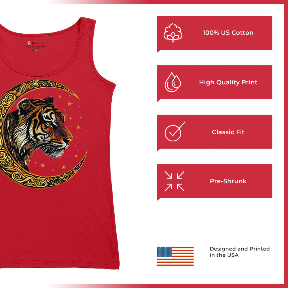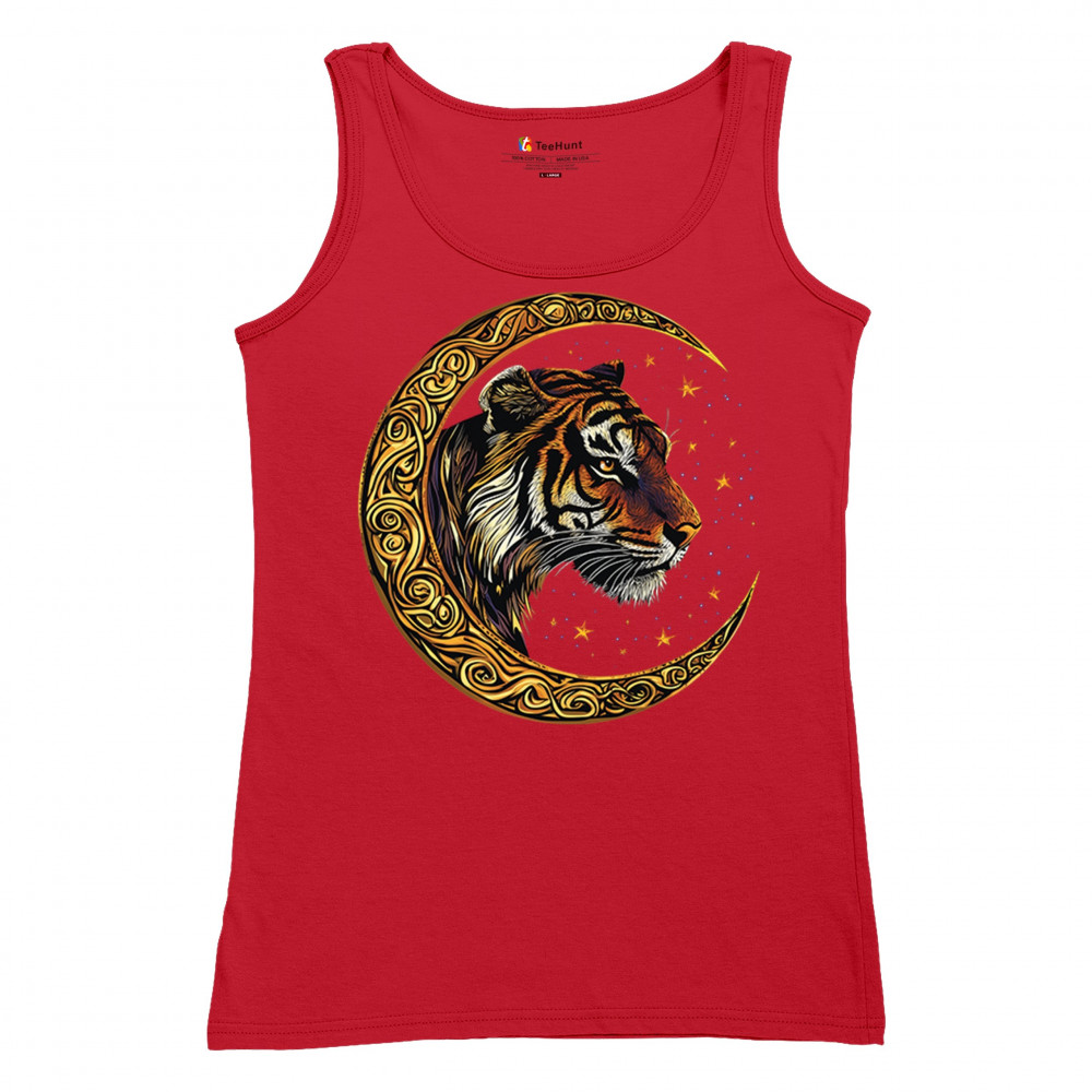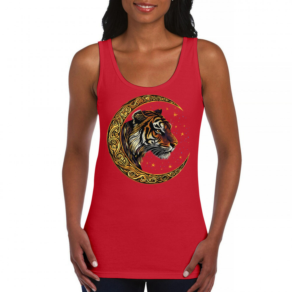 Bold tiger design in Celtic moon with cosmic sky. Symbol of strength, instinct, and jungle mysticism. Great for animal lovers and fantasy fans.
