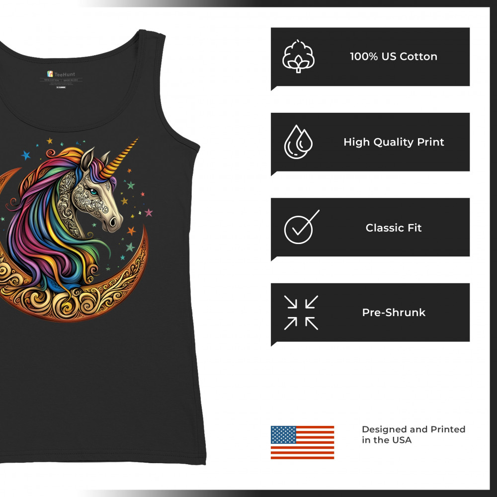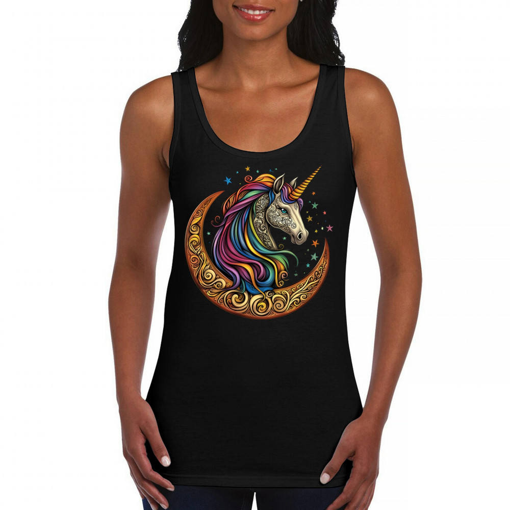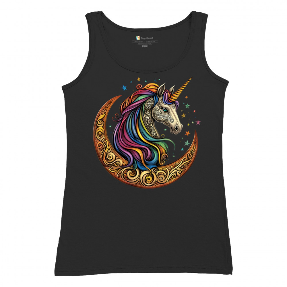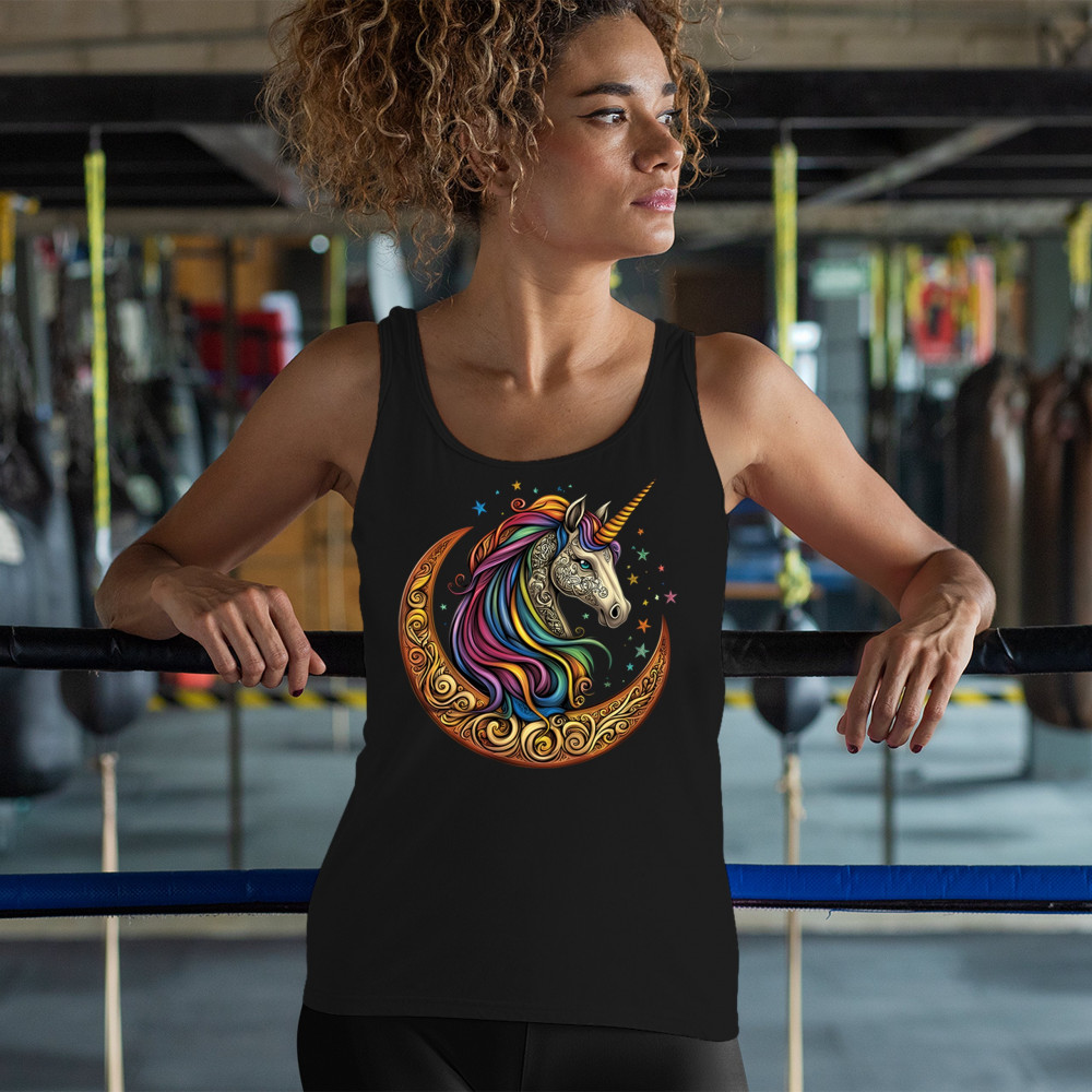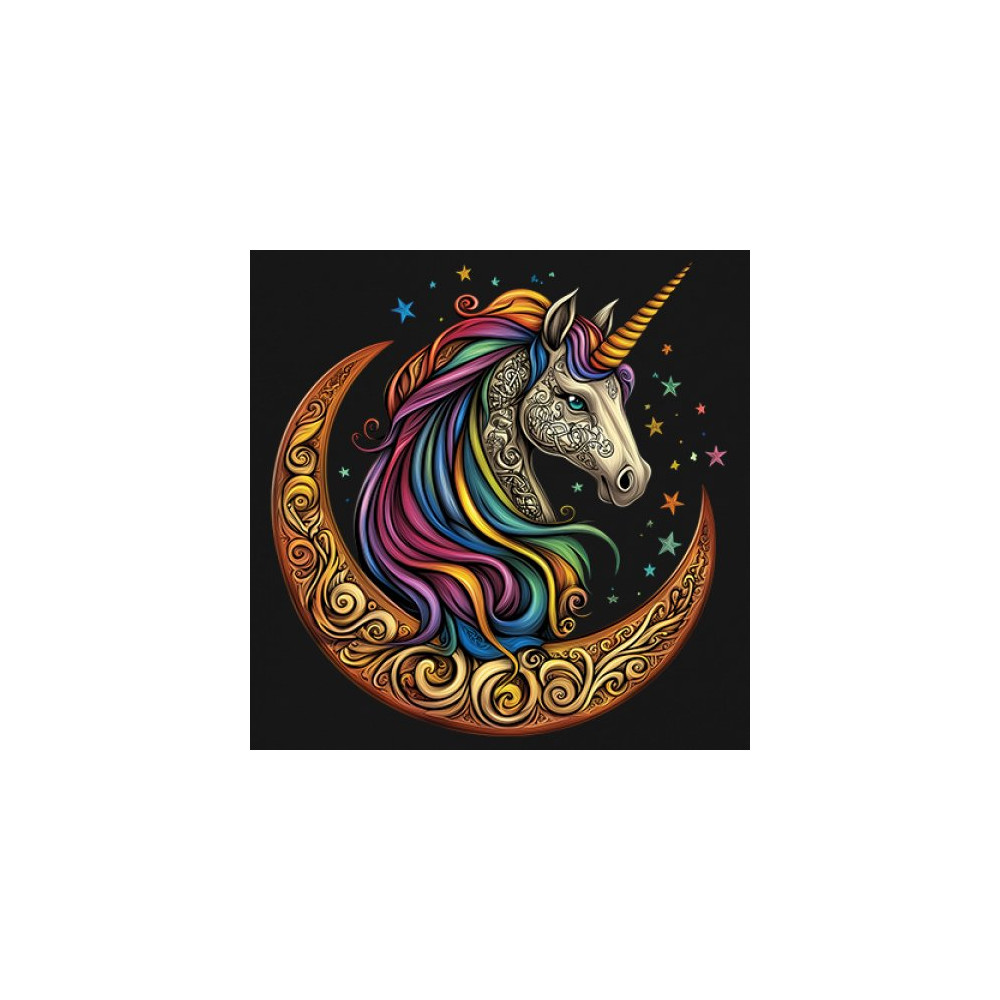 Rainbow-maned unicorn in golden Celtic moon design—perfect for fantasy lovers, dreamers, and unicorn fans who believe in magic and spirit.
