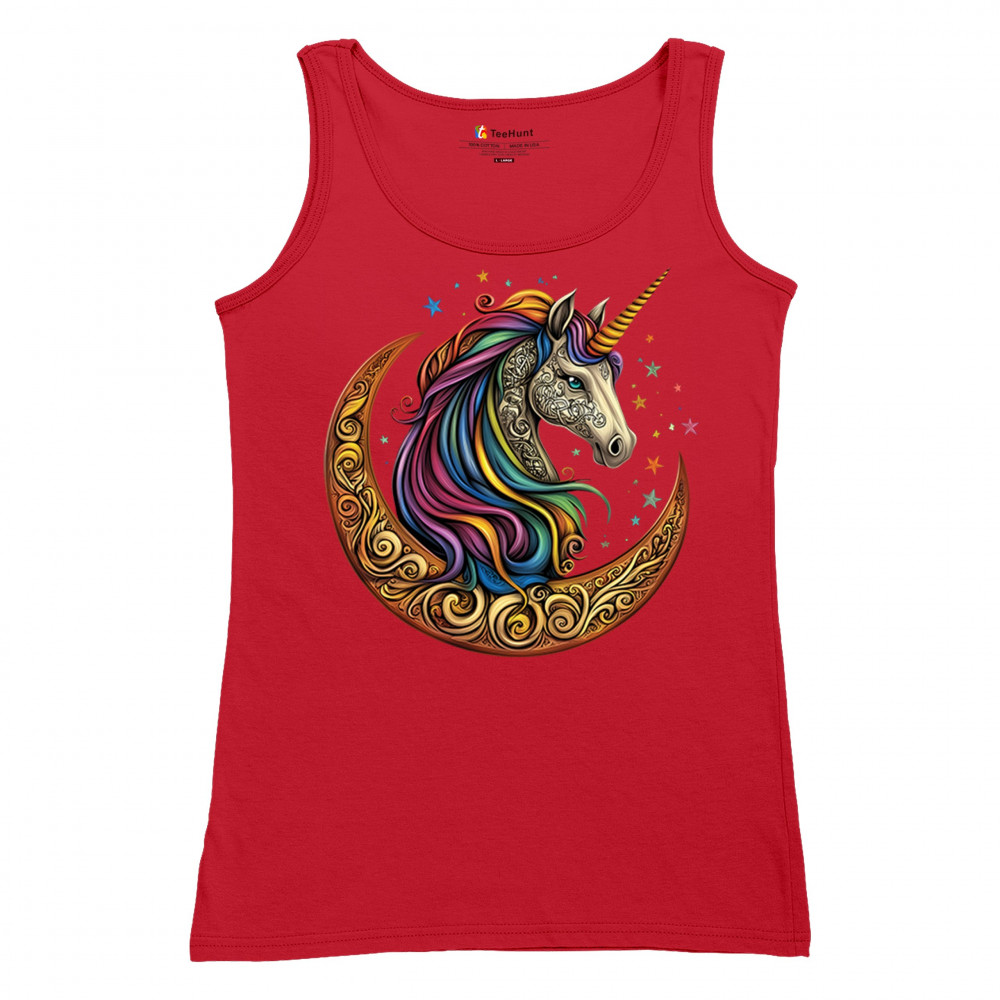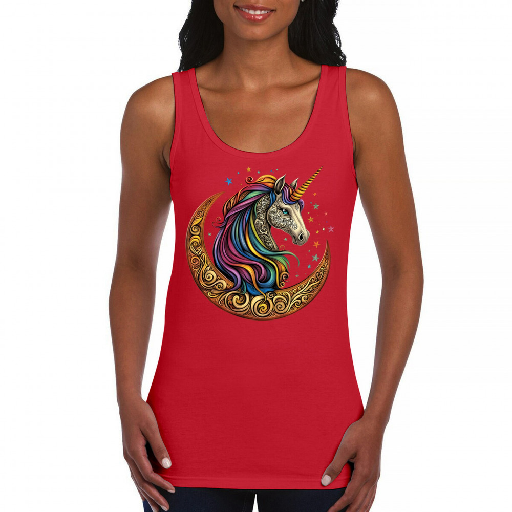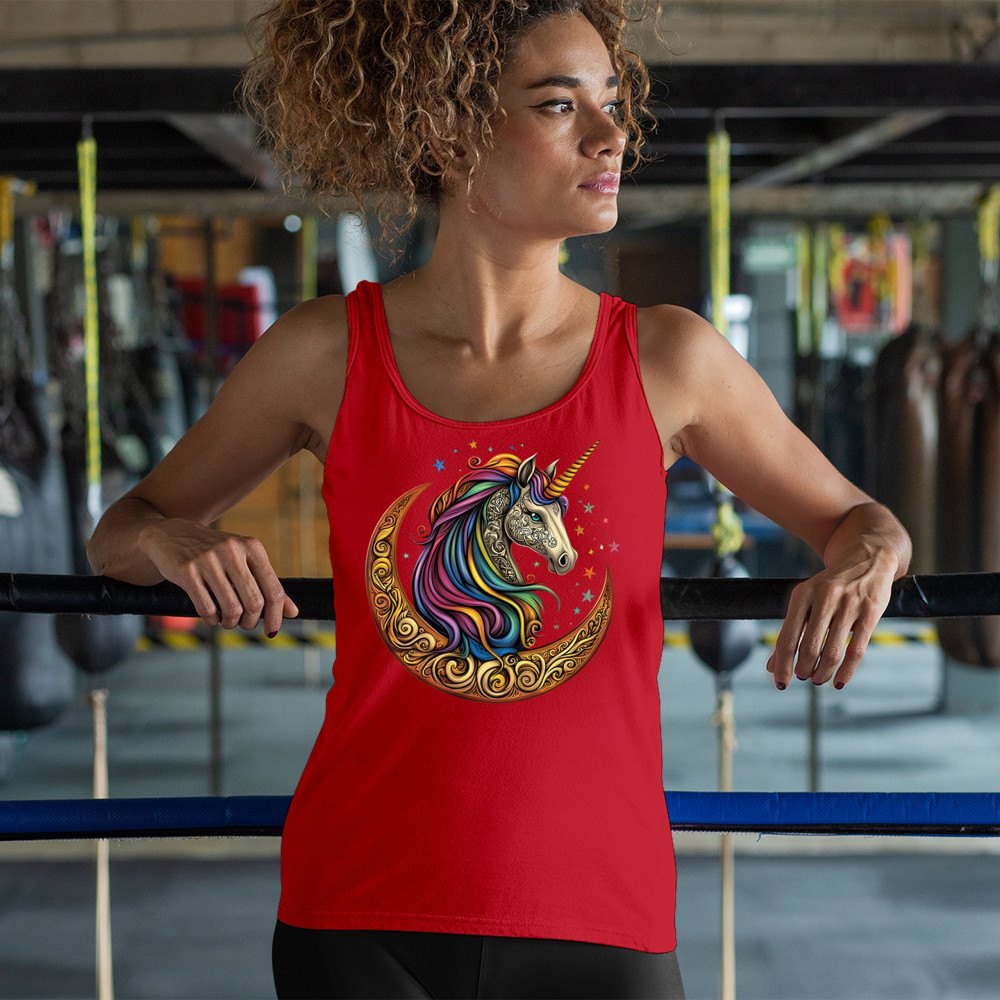 Rainbow-maned unicorn in golden Celtic moon design—perfect for fantasy lovers, dreamers, and unicorn fans who believe in magic and spirit.