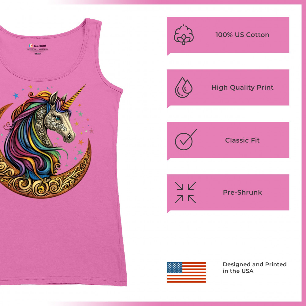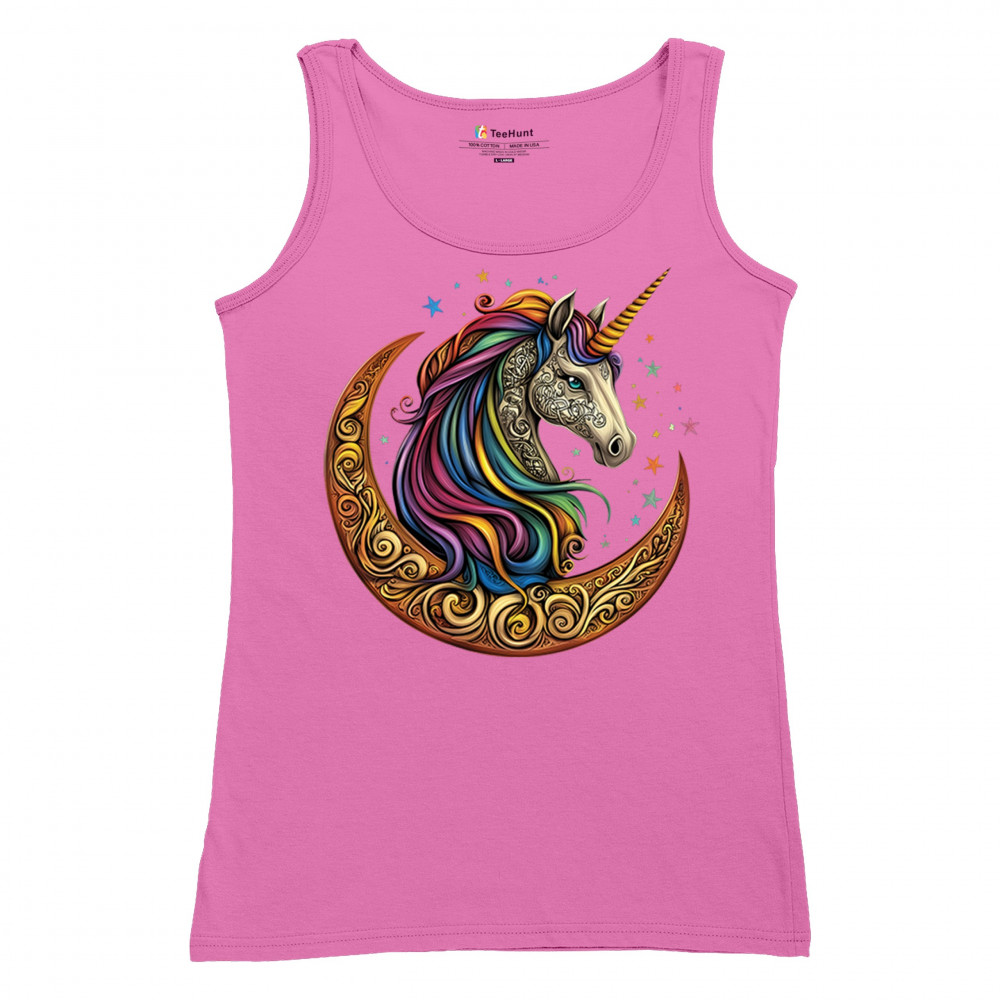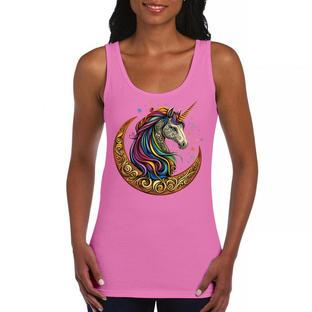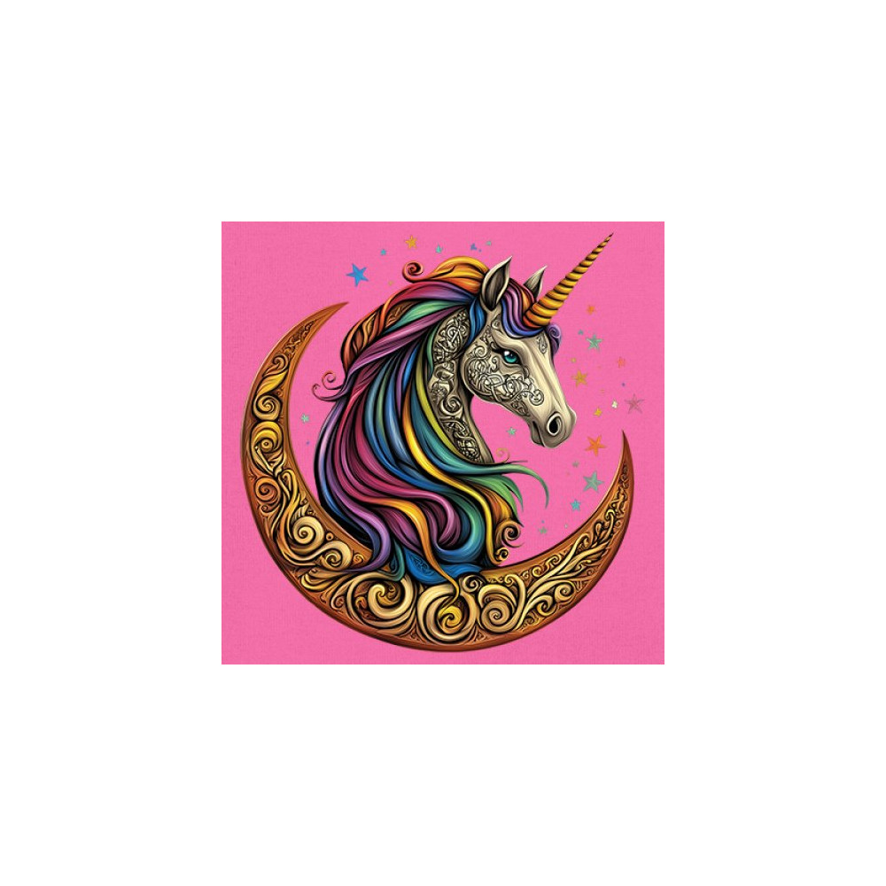 Rainbow-maned unicorn in golden Celtic moon design—perfect for fantasy lovers, dreamers, and unicorn fans who believe in magic and spirit.