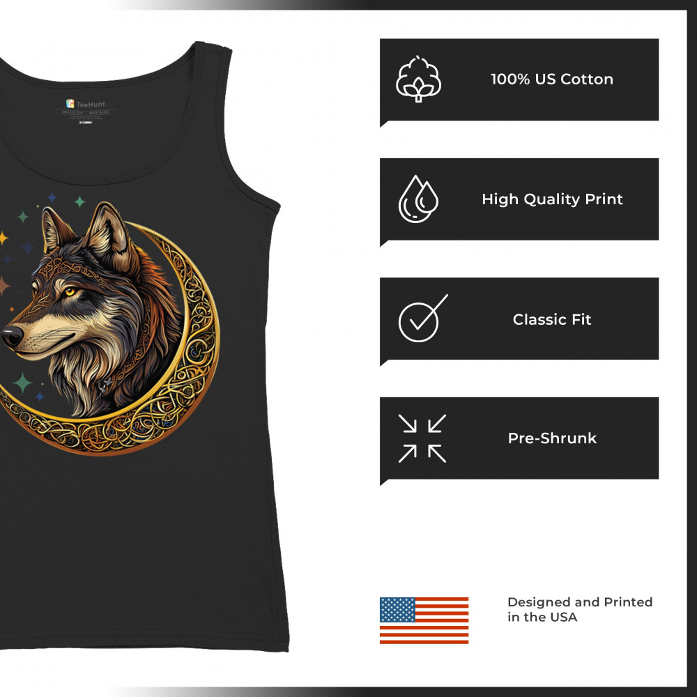 Celtic wolf design in a glowing crescent moon. Symbolizes loyalty, mysticism, and wild energy. Great for fantasy fans and spirit animal seekers.