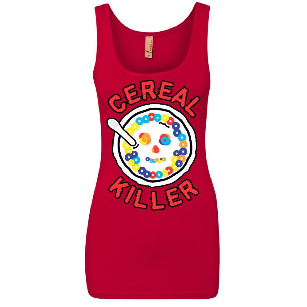 CEREAL KILLER women's tank top funny breakfast morning meal serial killer top red
