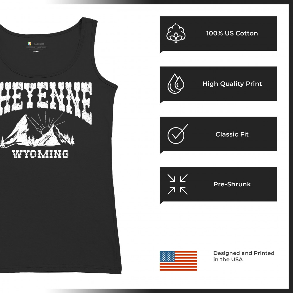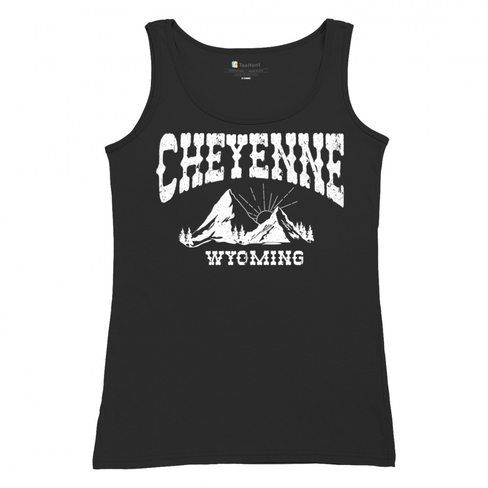 Vintage Cheyenne Wyoming design with mountain sunrise for outdoor lovers and locals. Perfect for travel, hiking, or Western pride.