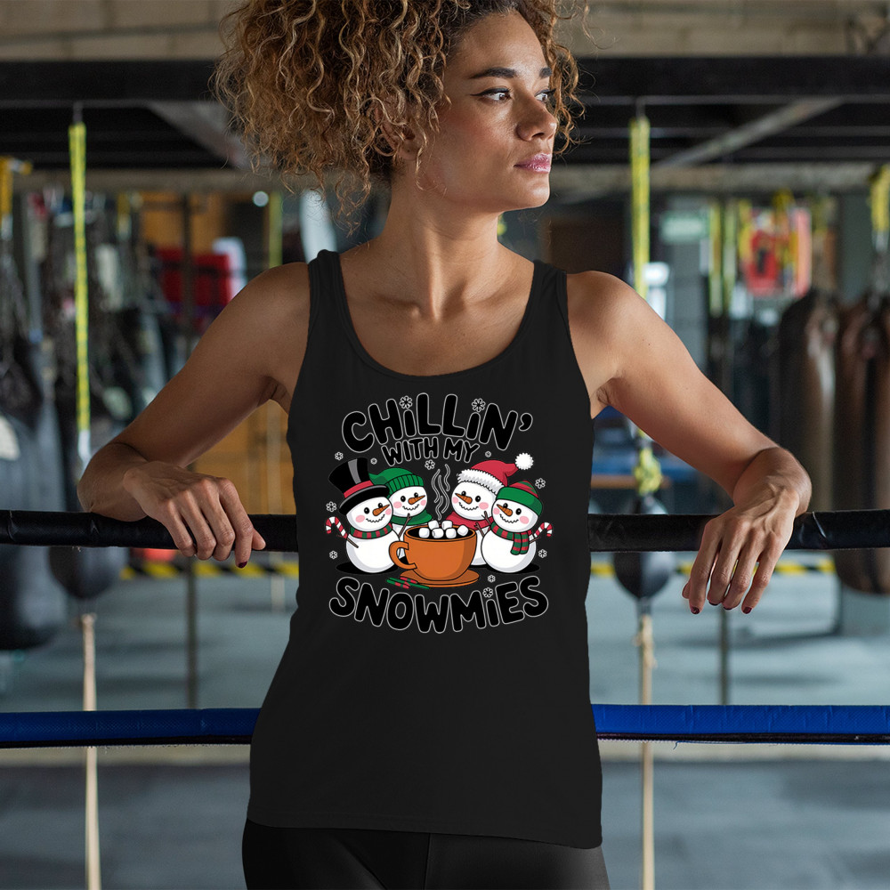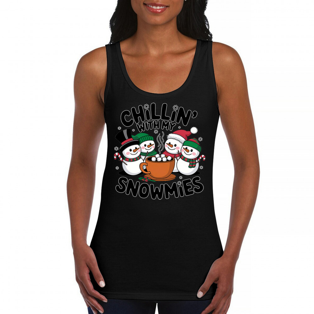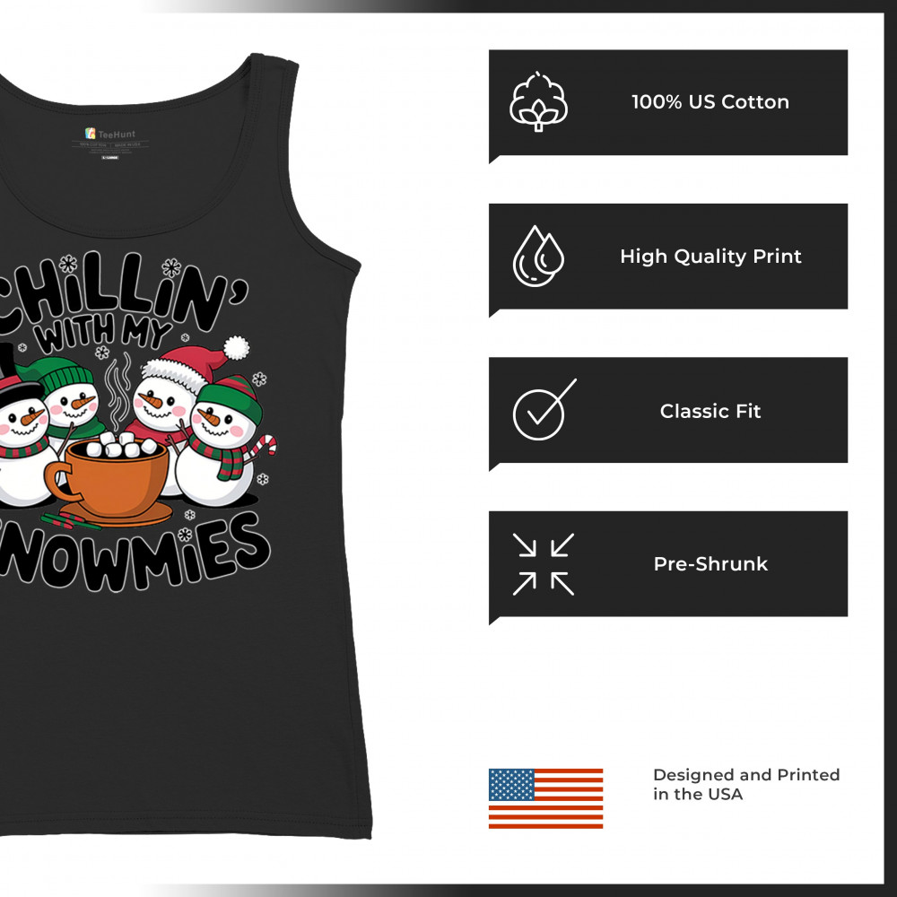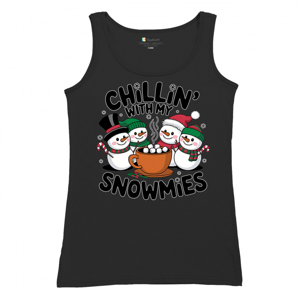 A cute and cheerful winter design showing happy snowmen sharing hot cocoa, perfect for Christmas gatherings, holiday events, seasonal photos, white-elephant gifting, festive family nights, winter celebrations, cozy weekend vibes, and fans of playful holiday humor. A fun graphic for anyone who loves bright and friendly Christmas styles.