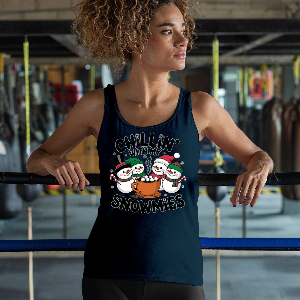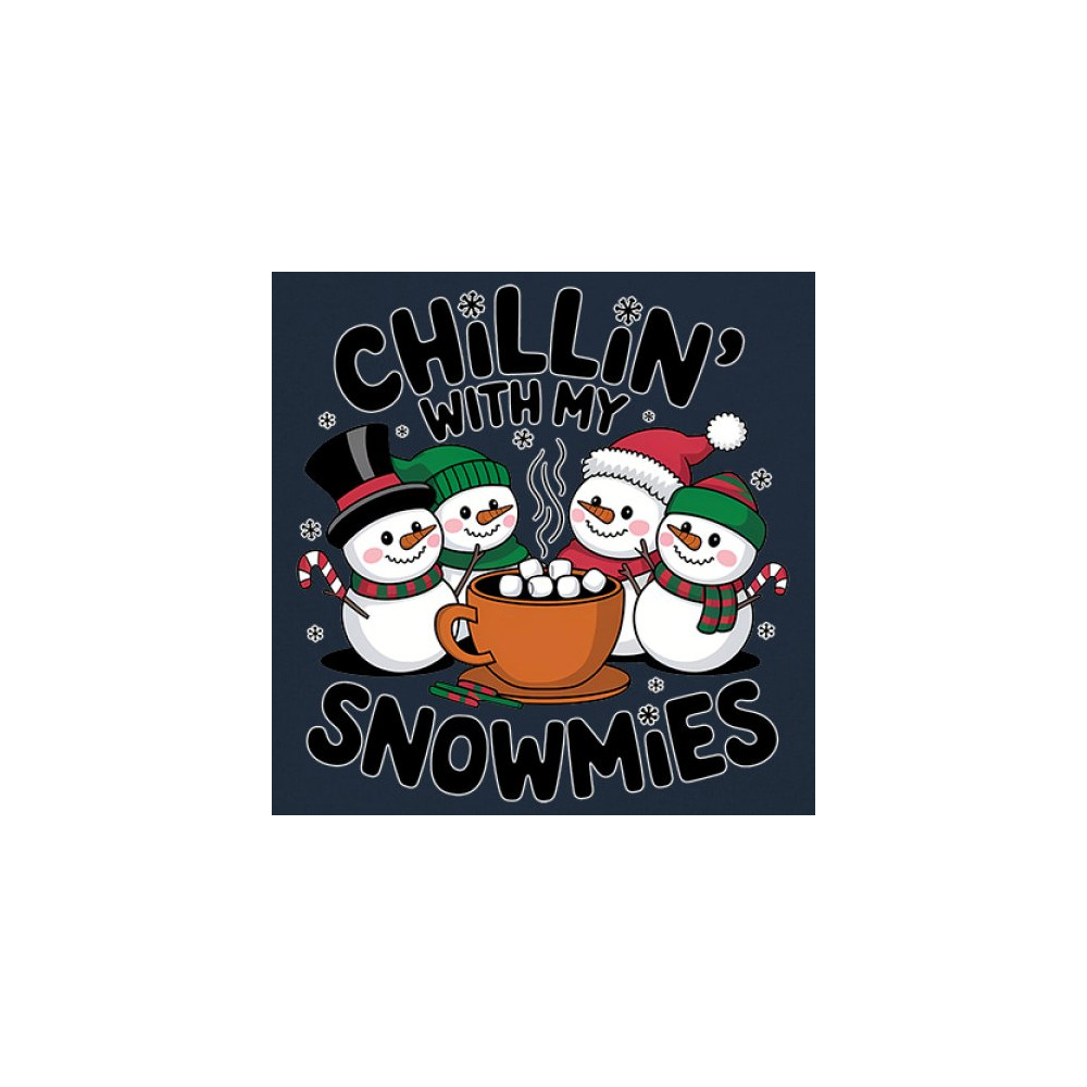 A cute and cheerful winter design showing happy snowmen sharing hot cocoa, perfect for Christmas gatherings, holiday events, seasonal photos, white-elephant gifting, festive family nights, winter celebrations, cozy weekend vibes, and fans of playful holiday humor. A fun graphic for anyone who loves bright and friendly Christmas styles.