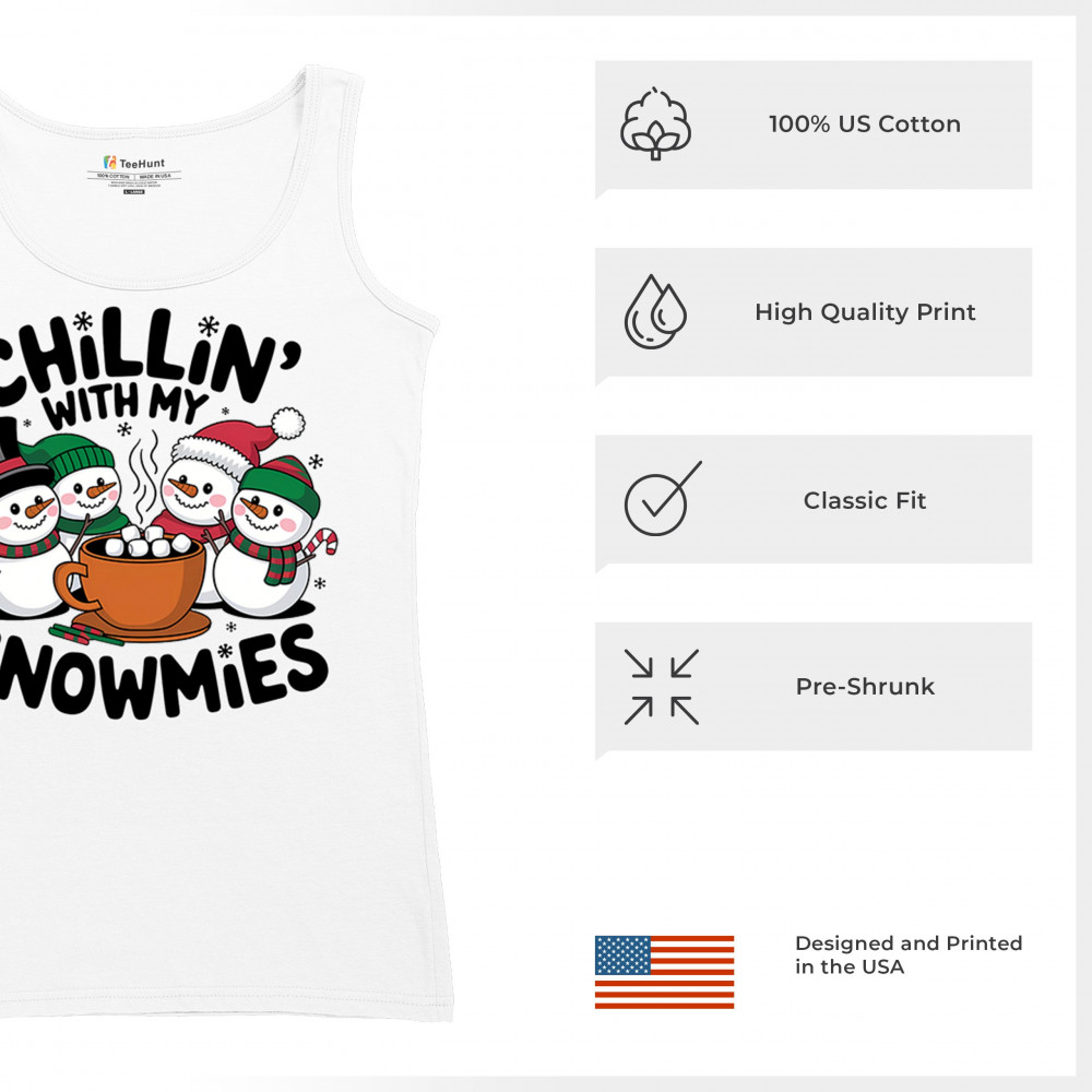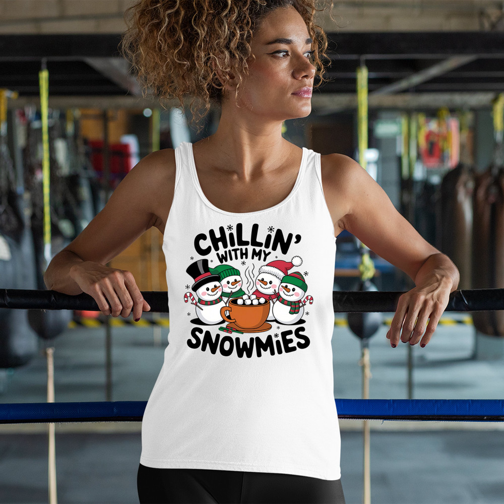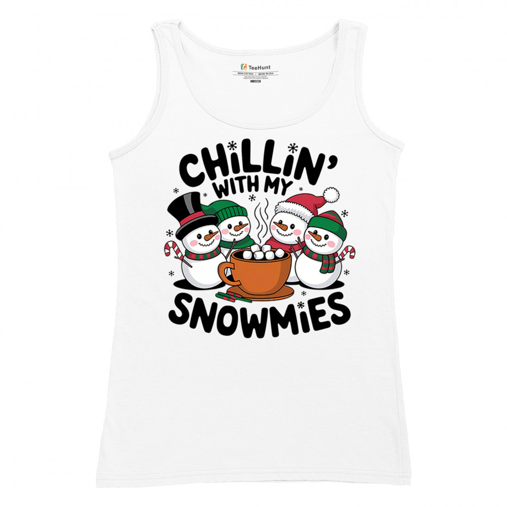 A cute and cheerful winter design showing happy snowmen sharing hot cocoa, perfect for Christmas gatherings, holiday events, seasonal photos, white-elephant gifting, festive family nights, winter celebrations, cozy weekend vibes, and fans of playful holiday humor. A fun graphic for anyone who loves bright and friendly Christmas styles.