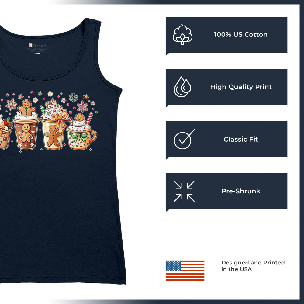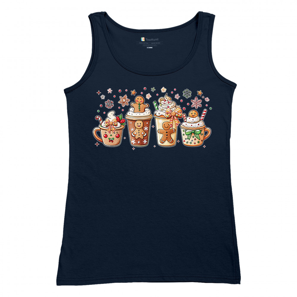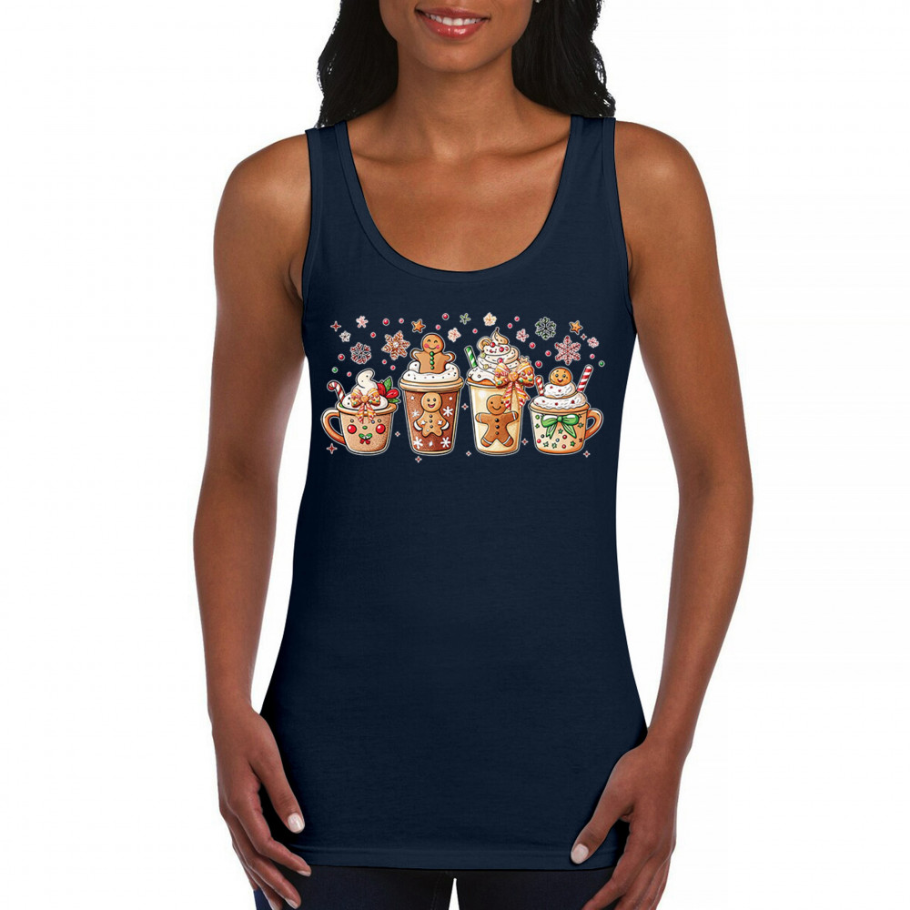 This cute Christmas drink design showcases gingerbread mugs, whipped cream, candy canes, sprinkles, and festive decorations for a warm winter aesthetic. Perfect for cocoa lovers, coffee fans, bakers, cozy holiday nights, gift exchanges, Christmas morning vibes, seasonal parties, and anyone who loves adorable dessert-inspired holiday art.