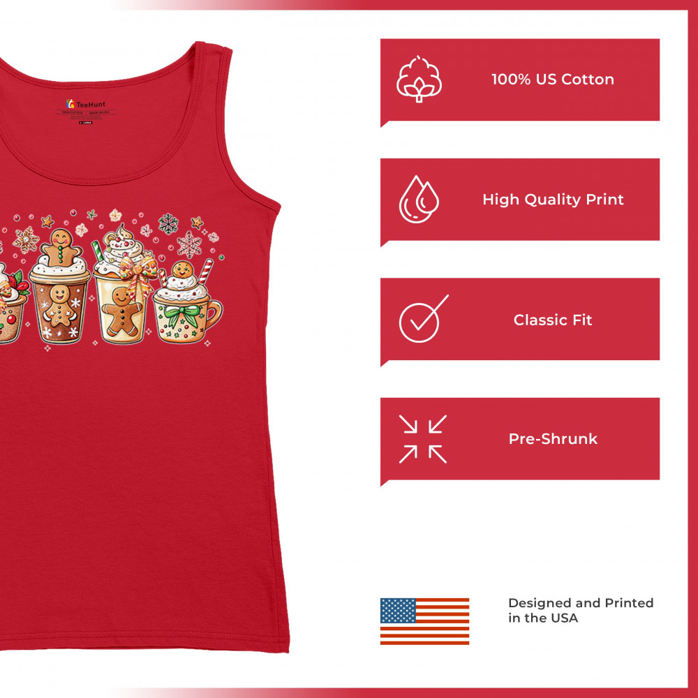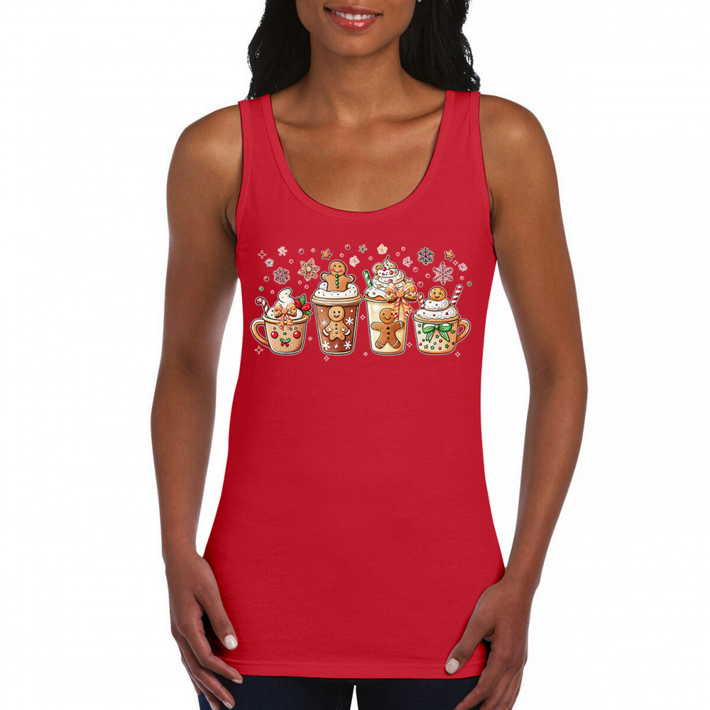This cute Christmas drink design showcases gingerbread mugs, whipped cream, candy canes, sprinkles, and festive decorations for a warm winter aesthetic. Perfect for cocoa lovers, coffee fans, bakers, cozy holiday nights, gift exchanges, Christmas morning vibes, seasonal parties, and anyone who loves adorable dessert-inspired holiday art.