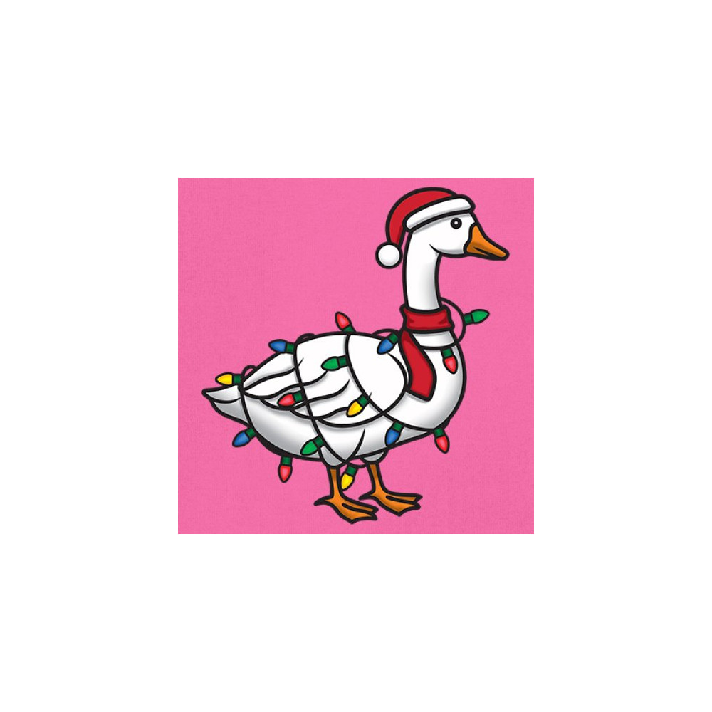 This festive Christmas goose wrapped in bright holiday lights delivers a quirky mix of humor and seasonal charm. Perfect for white elephant exchanges, Secret Santa gifting, or anyone who loves fun holiday graphics. A standout design that blends playful animal humor, cheerful color, and unmistakable Christmas spirit for the entire season.