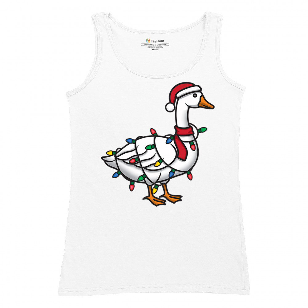 Funny Christmas goose wrapped in lights with festive humor, perfect for holiday gifting, white elephant exchanges, and cheerful seasonal style.