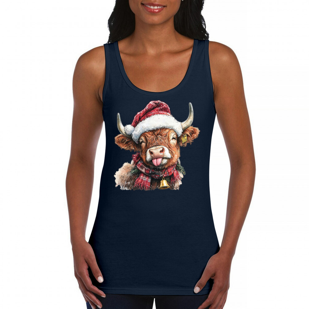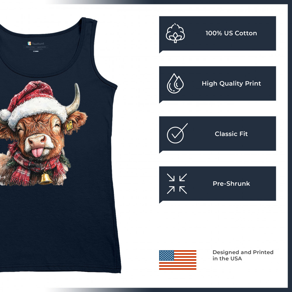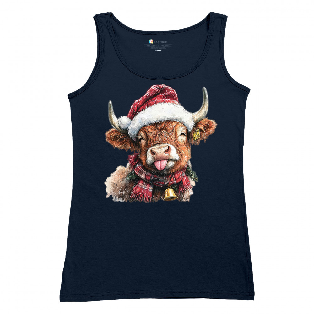 Christmas Highland Cow shirt – rustic holiday design with Santa hat cow, farmhouse holiday humor, country Christmas vibes, and festive livestock art.