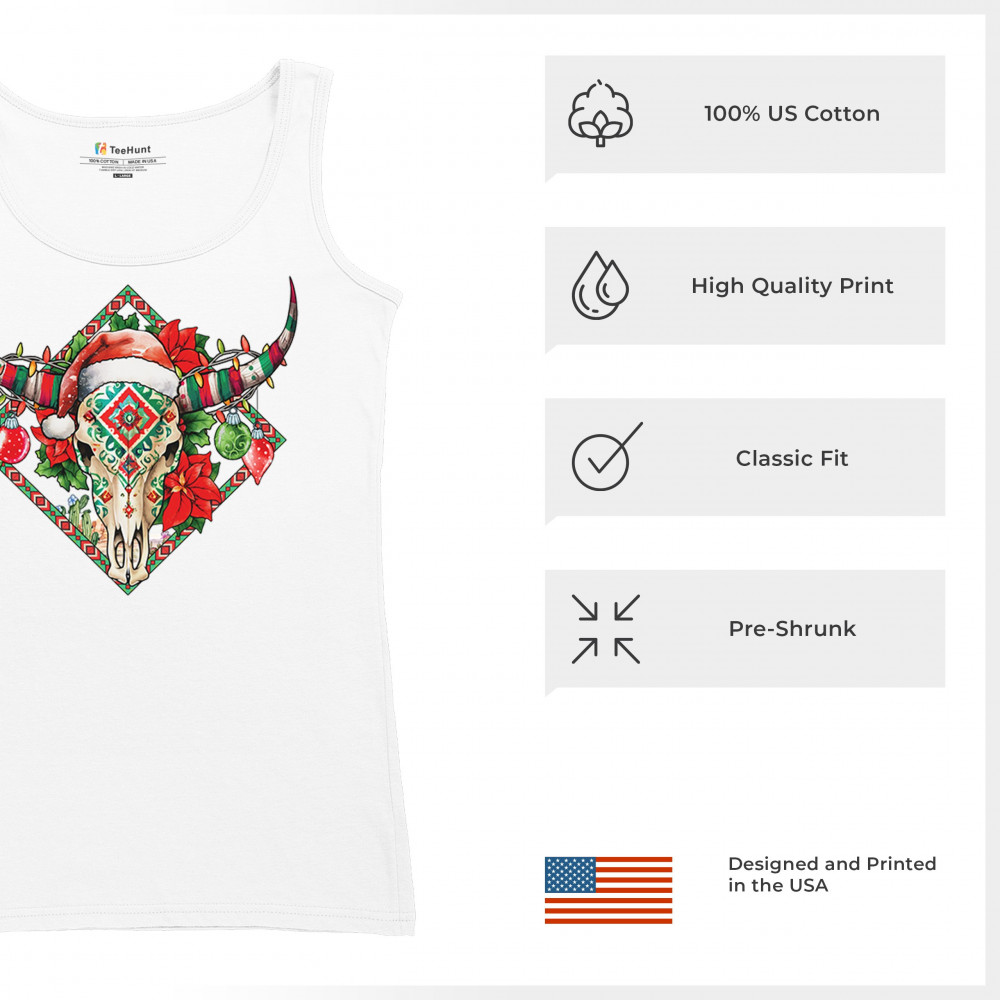 Blend Southwestern charm with holiday cheer! This vibrant skull design with poinsettias and ornaments is perfect for festive parties and unique gifts!