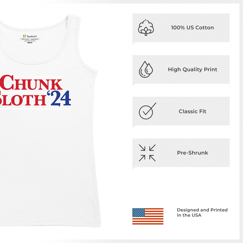 Celebrate 80s nostalgia and political humor with our Chunk and Sloth '24 design. Perfect for casual wear, movie nights, and themed parties. Durable and stylish.
