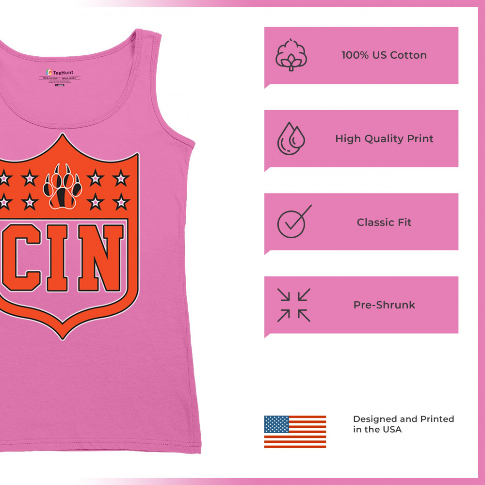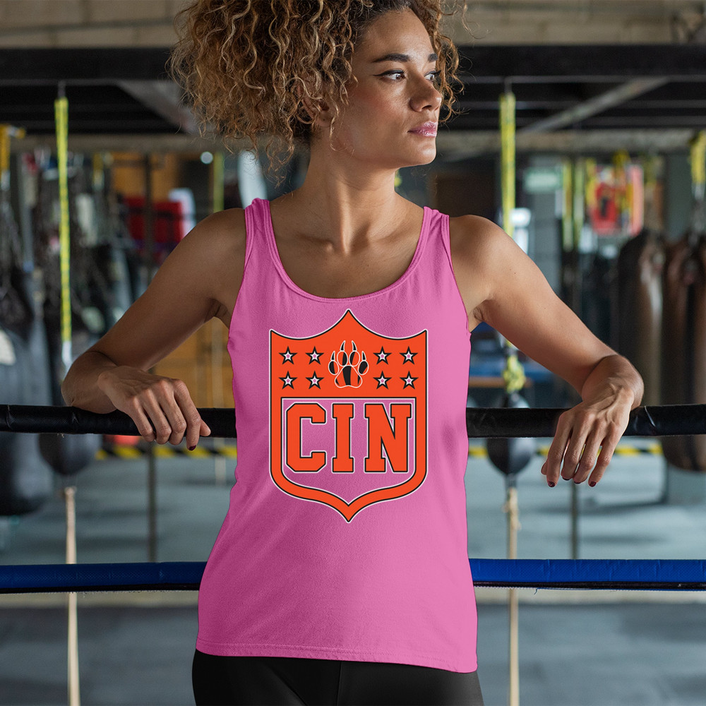 Bold CIN paw shield for Cincinnati football fans. Retro crest style, underdog spirit, and vintage game day gear for true Cincinnati grit.