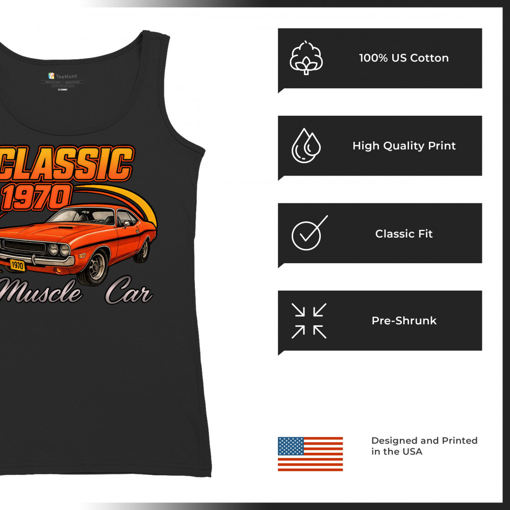 Show your pride for American muscle with this bold 1970 design featuring a classic orange coupe in retro detail. Perfect for gearheads, vintage car lovers, and collectors who live for the sound of old-school performance. A tribute to the raw attitude and street dominance of 1970 muscle.