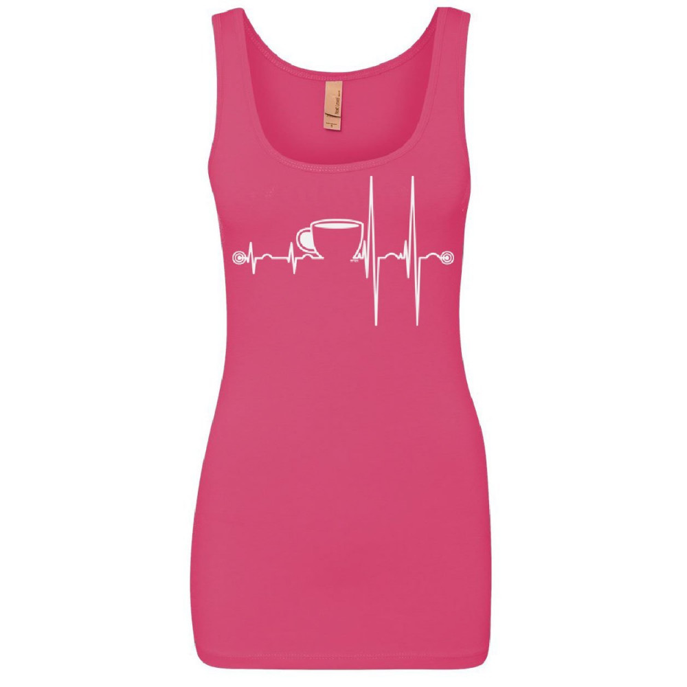 COFFEE CUP HEARTBEAT women's tank top energy waking up coffee drinker top pink