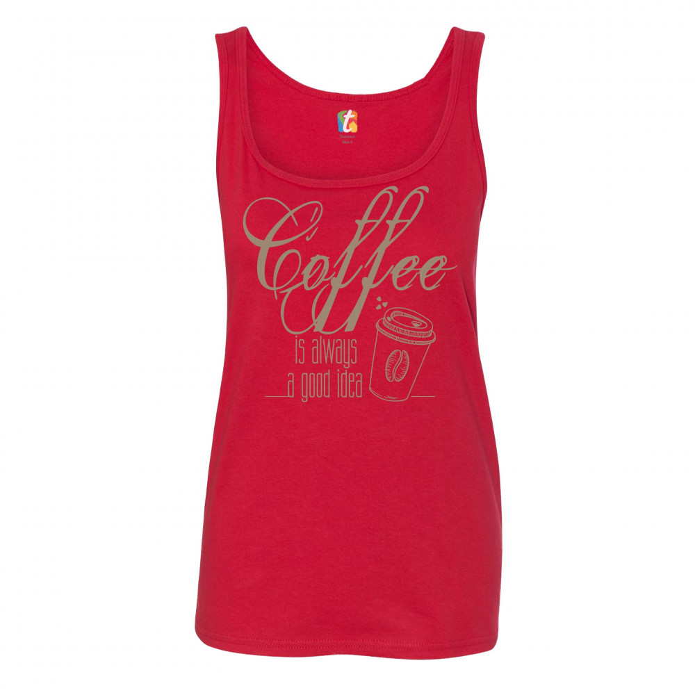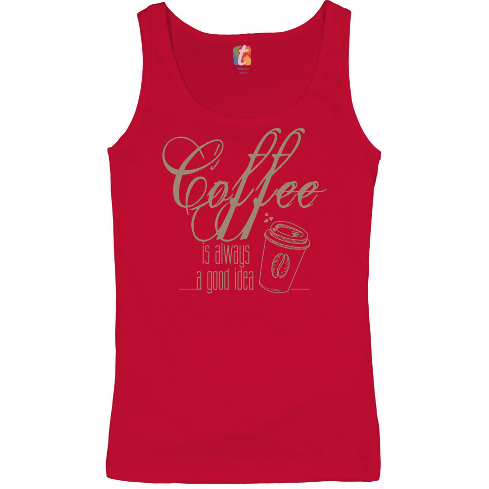 A print saying "Coffee is always a good idea". The print features a picture of a paper cup of tea with a coffee bean on it and with several hearts steaming from it. A great choice to wear to spread positive vibes and show what a passionate coffee fan you