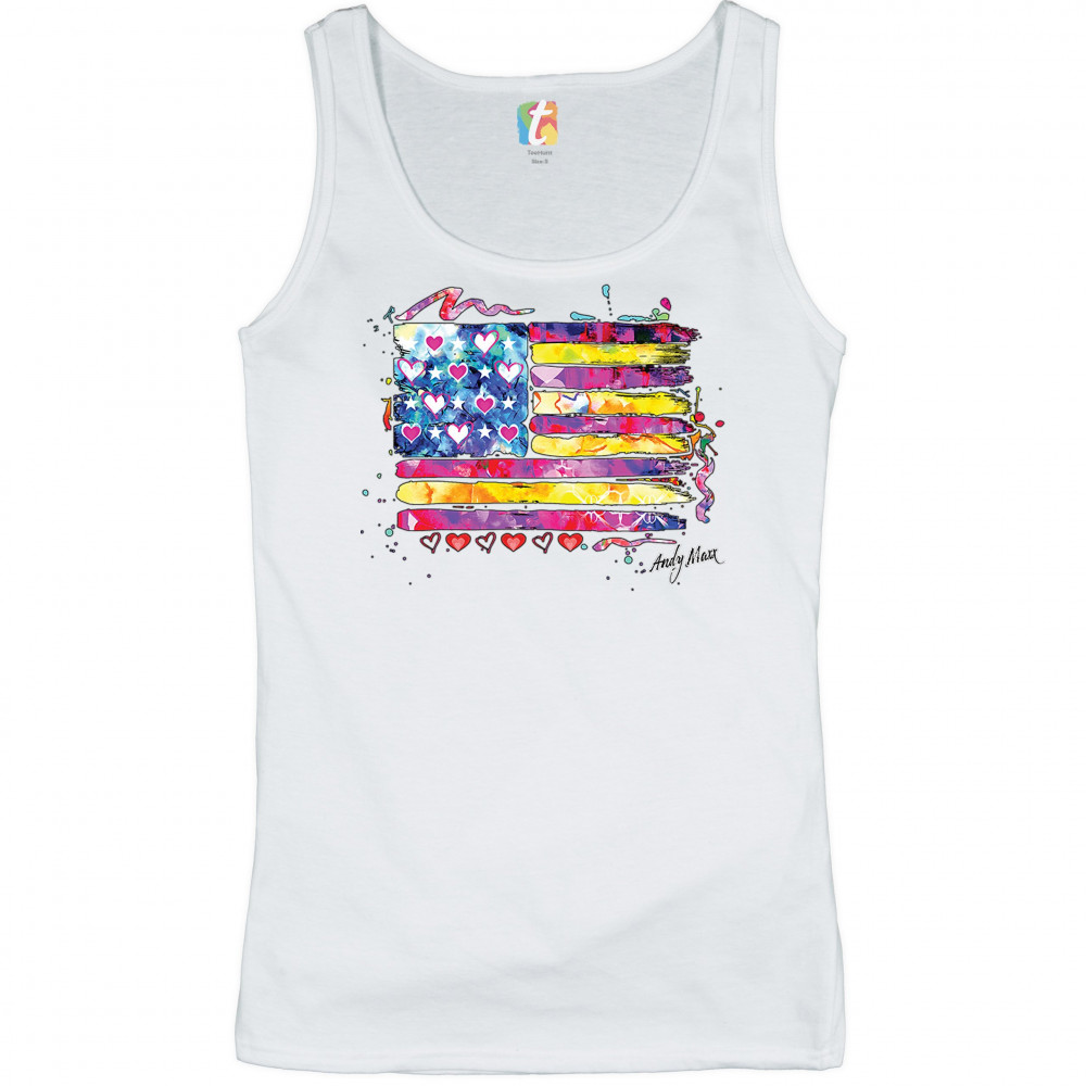 COLORFUL AMERICAN FLAG women's tank top patriotic 4th of july independence white