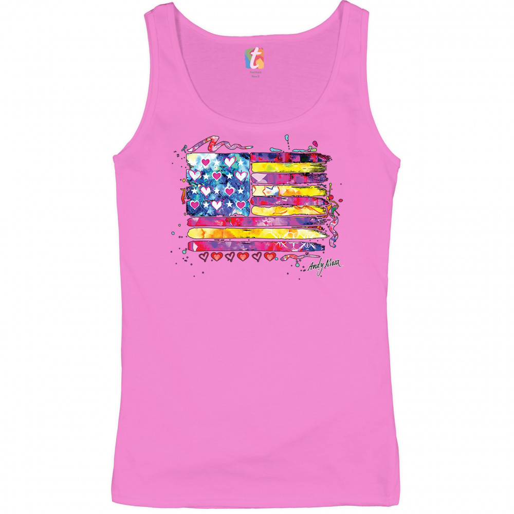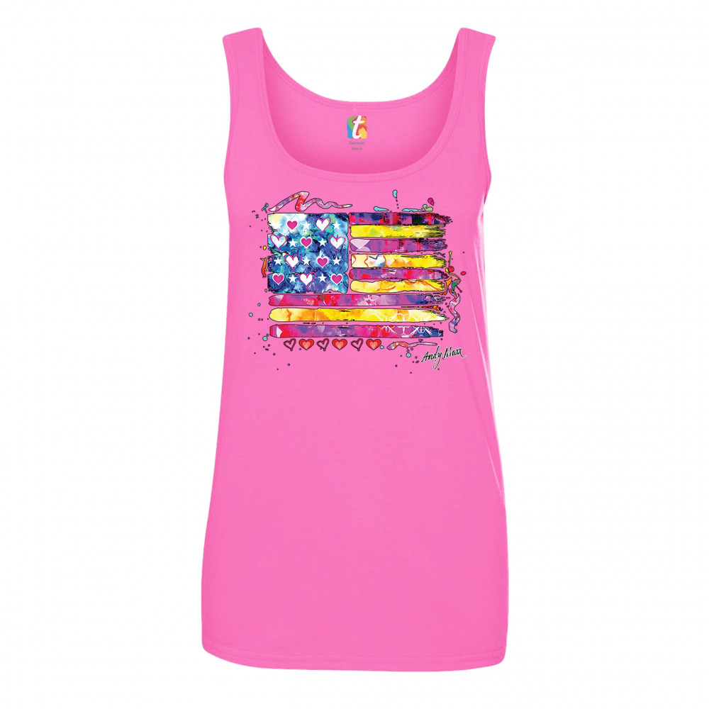 COLORFUL AMERICAN FLAG women's tank top patriotic 4th of july independence pink