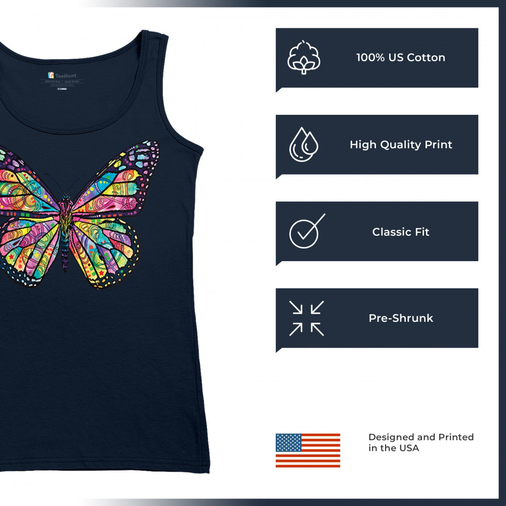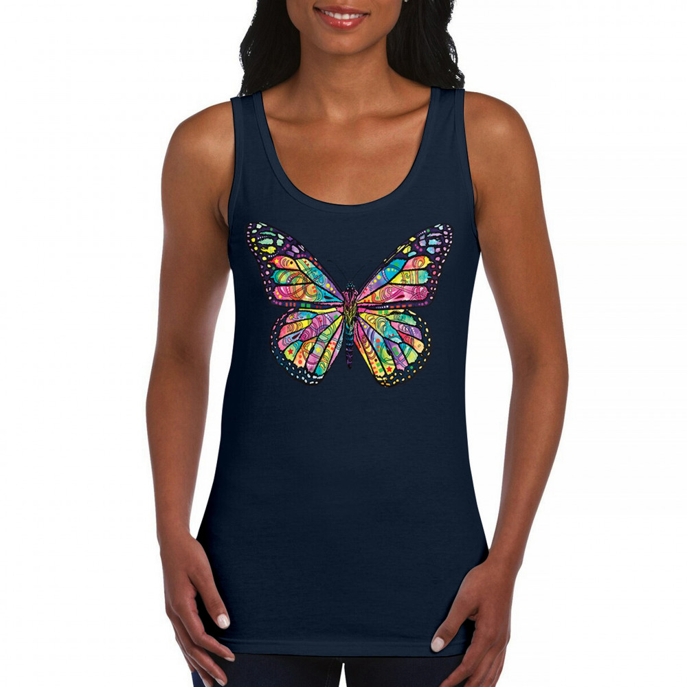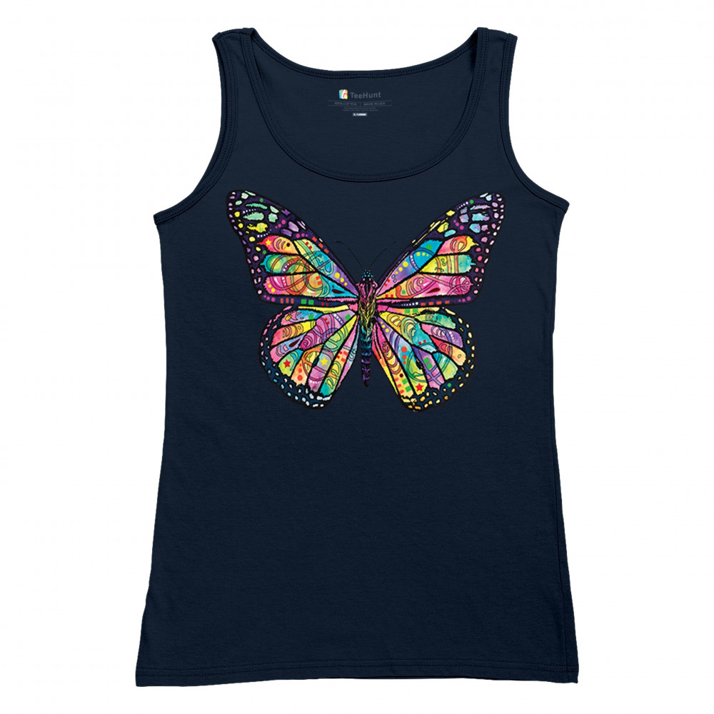 COLORFUL NEON BUTTERFLY women's tank top dean russo beautiful nature navy blue