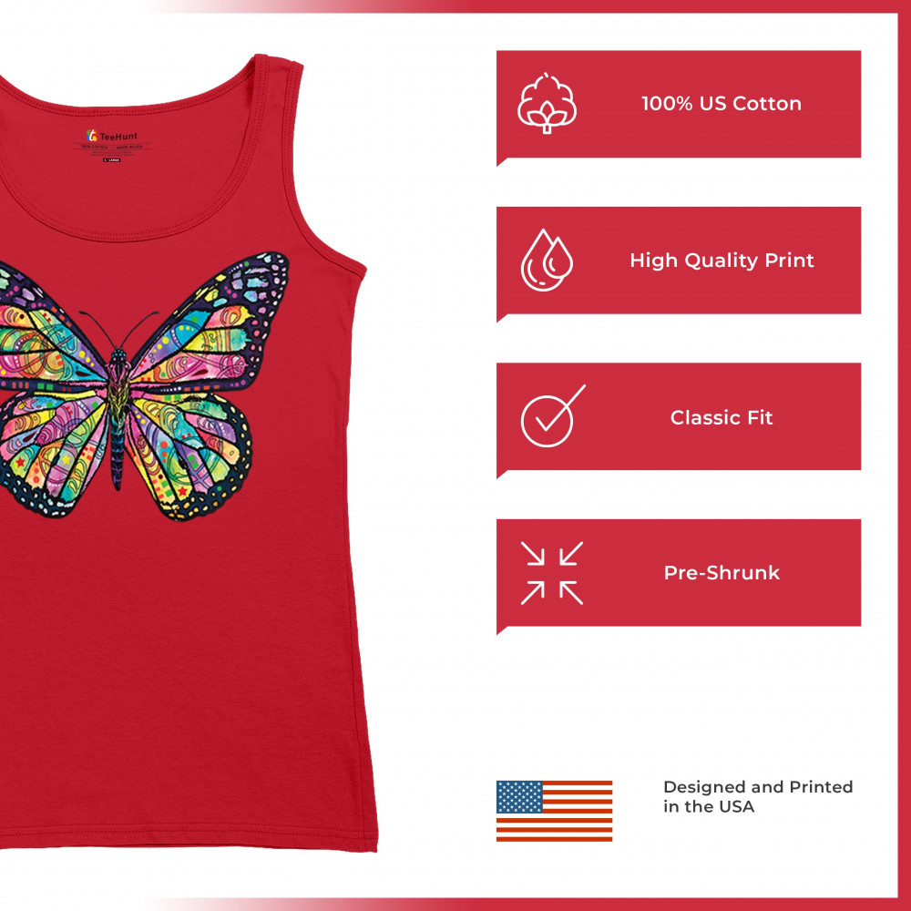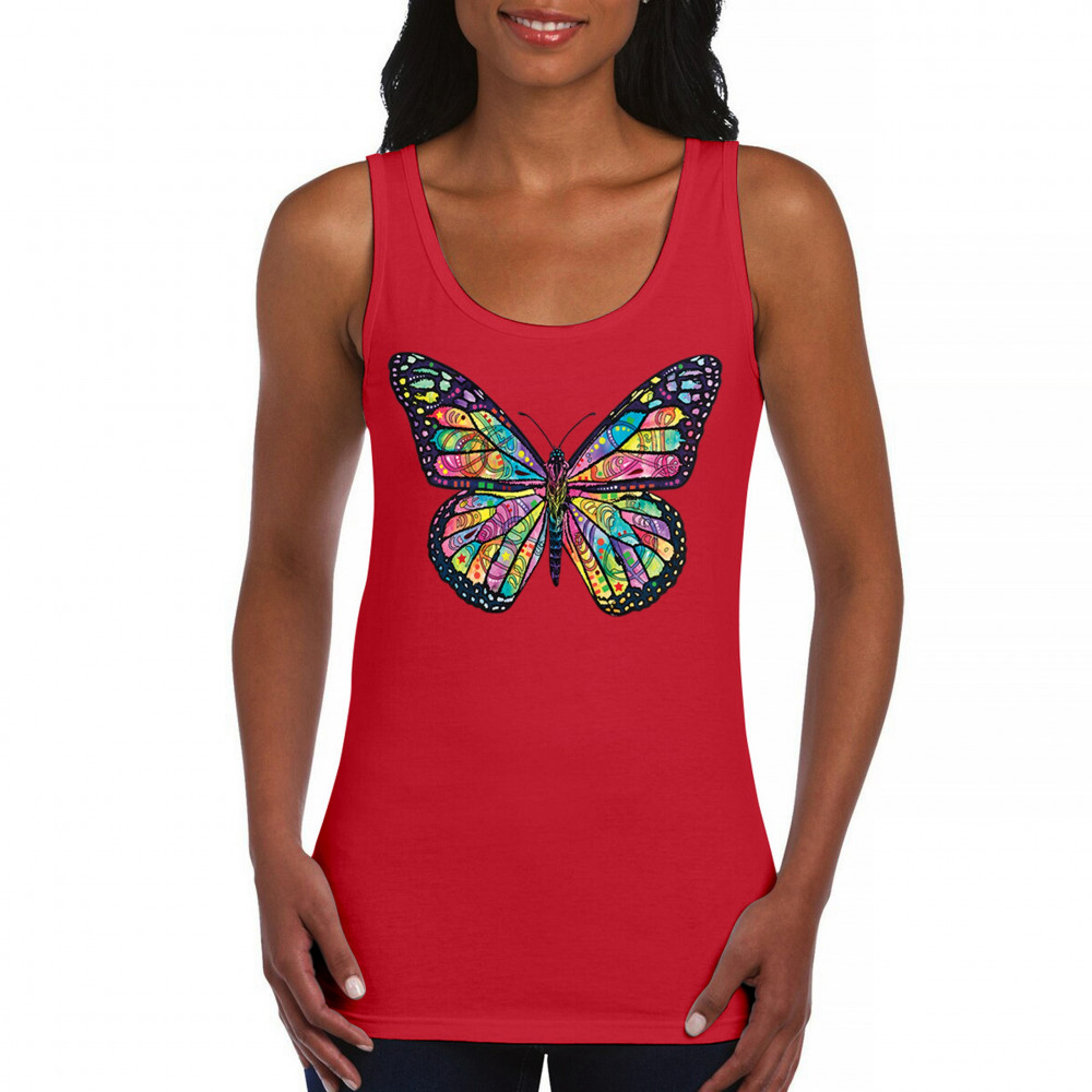 COLORFUL NEON BUTTERFLY women's tank top dean russo beautiful nature red