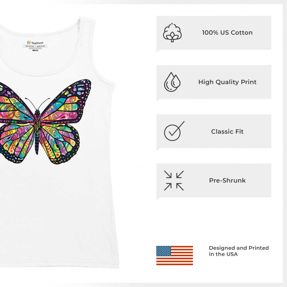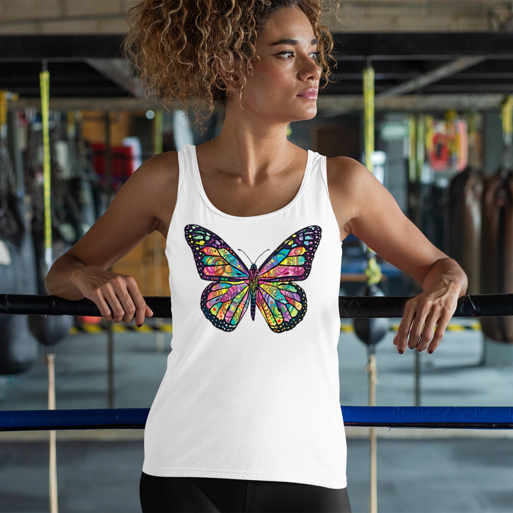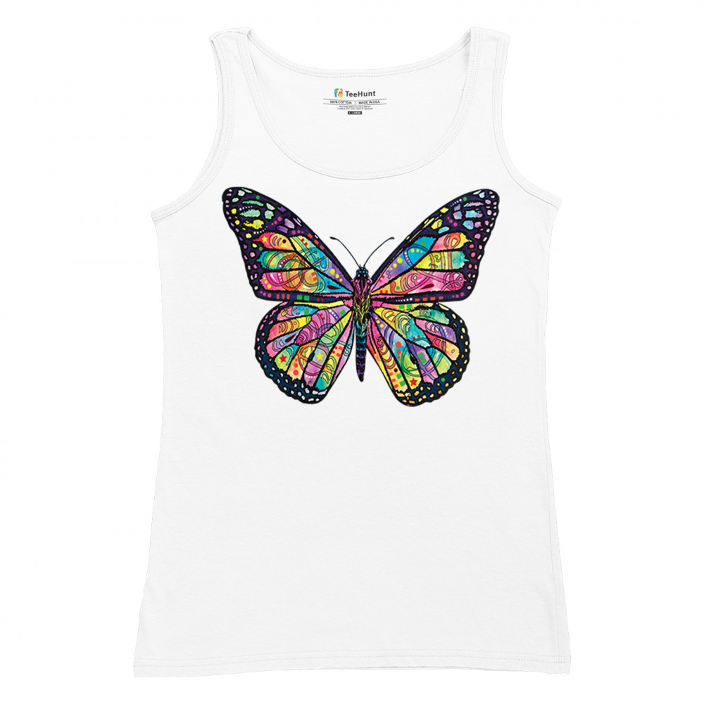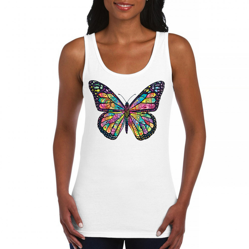 COLORFUL NEON BUTTERFLY women's tank top dean russo beautiful nature white