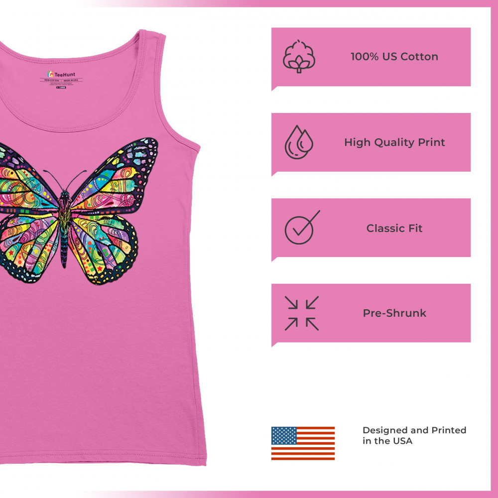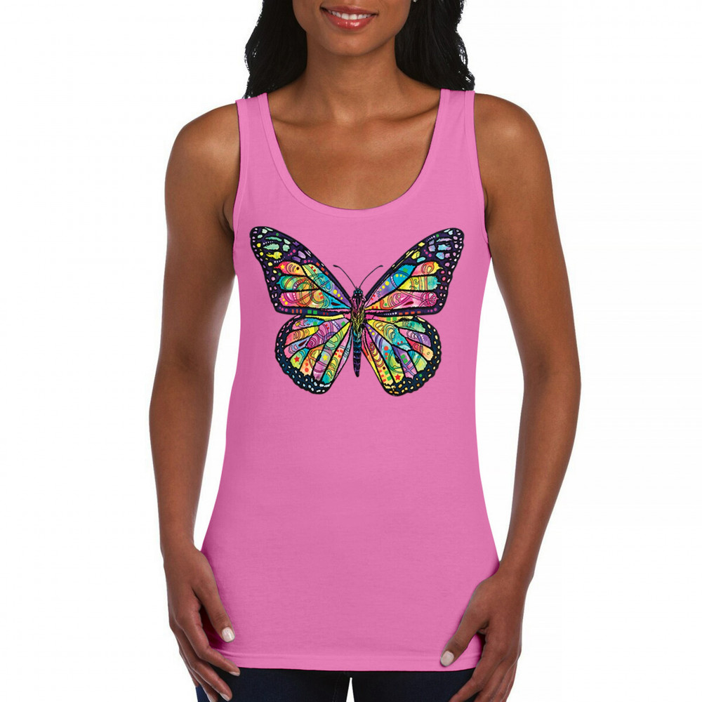 COLORFUL NEON BUTTERFLY women's tank top dean russo beautiful nature pink