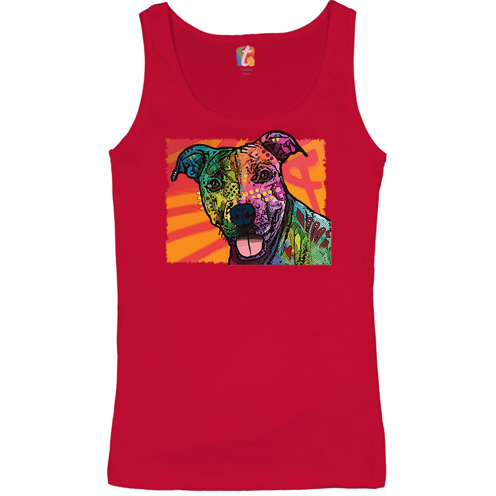COLORFUL PITBULL women's tank top andy maxx dog lover pet owner adopt red