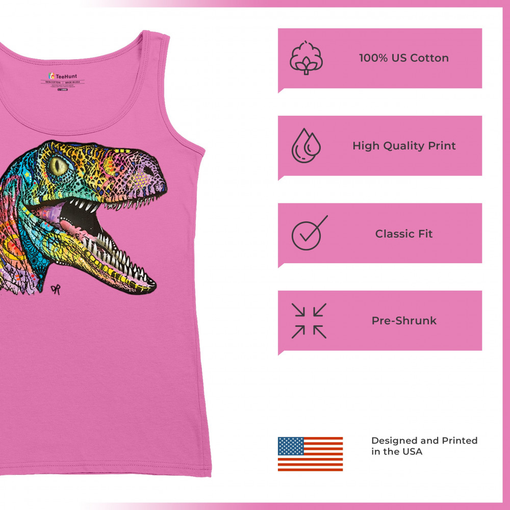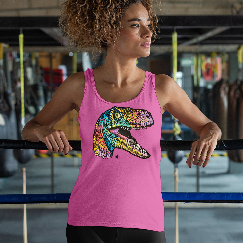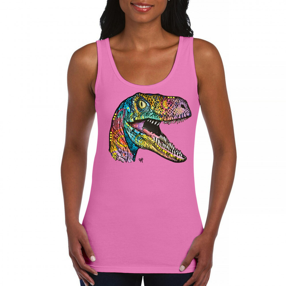 COLORFUL RAPTOR women's tank top dean russo neon jurassic dinosaur pink