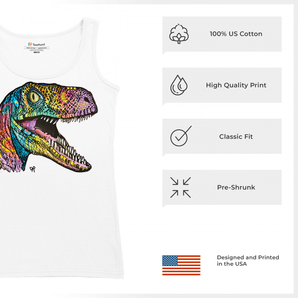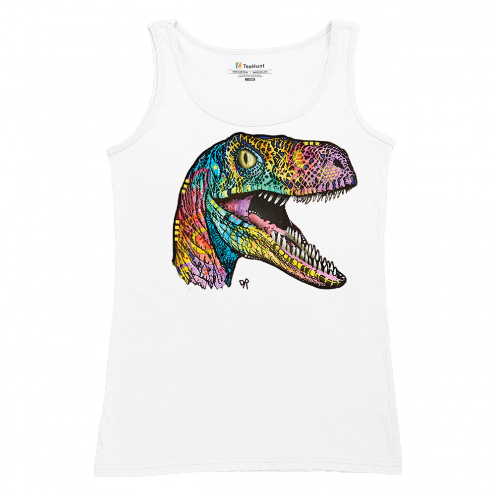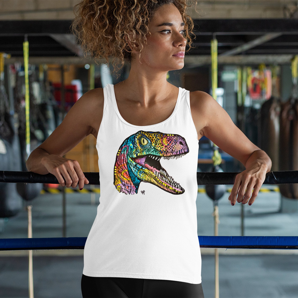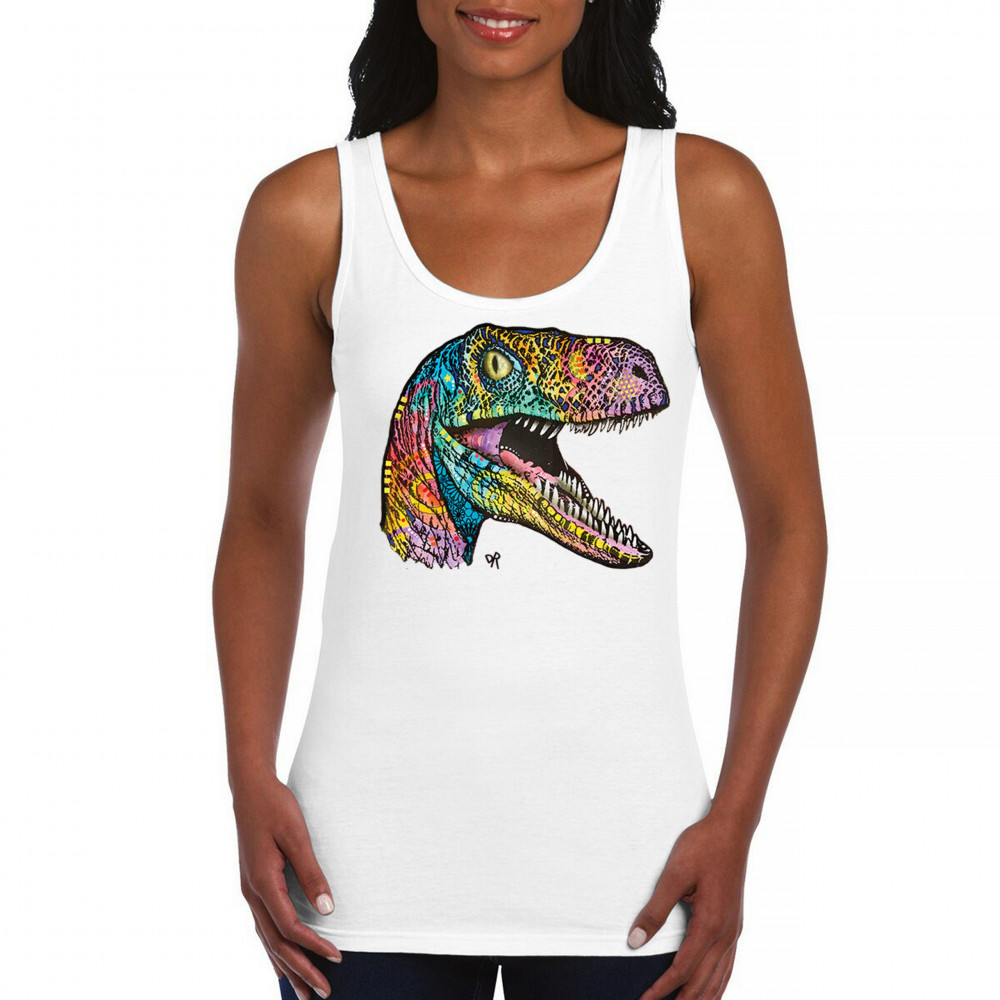 COLORFUL RAPTOR women's tank top dean russo neon jurassic dinosaur white