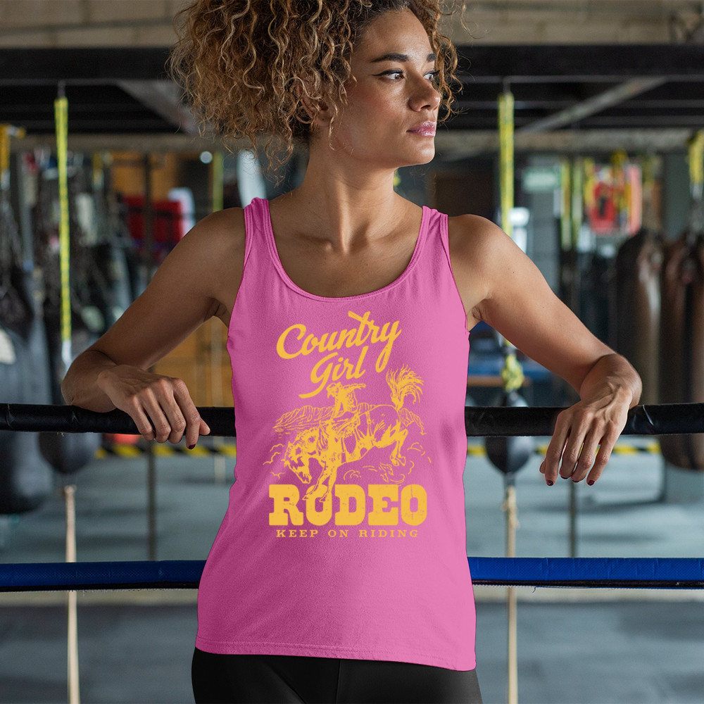 Celebrate cowgirl spirit with this bold design featuring a fearless rider holding strong in classic rodeo fashion. Built for western women who embrace rural life, horse riding, and country toughness. Whether it's for fairs, rodeos, or music nights, this design rides with you.