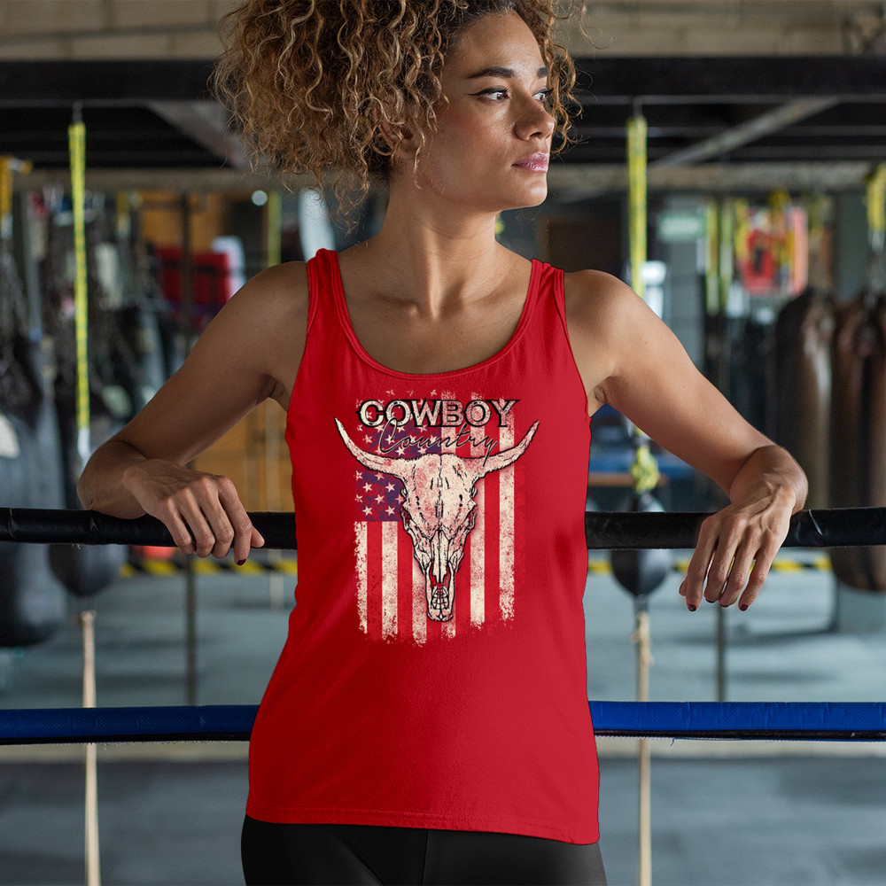 Celebrate western heritage with the Cowboy Country steer skull design, layered over a distressed American flag. This artwork embodies rustic Americana, rodeo style, and desert vibes. Perfect for cowboy décor lovers, ranch life enthusiasts, and those drawn to the wild west’s grit and prairie aesthetic. Wear your frontier spirit proudly.