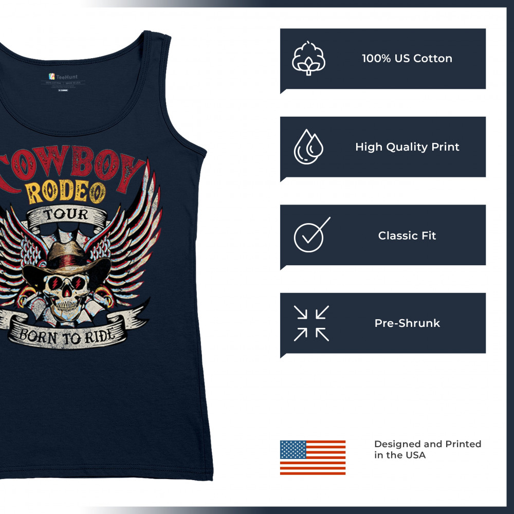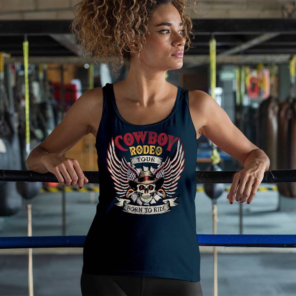 Cowboy Rodeo Tour “Born to Ride†design with skull, wings, and western grit. Built for riders, rebels, and rodeo fans who live wild.