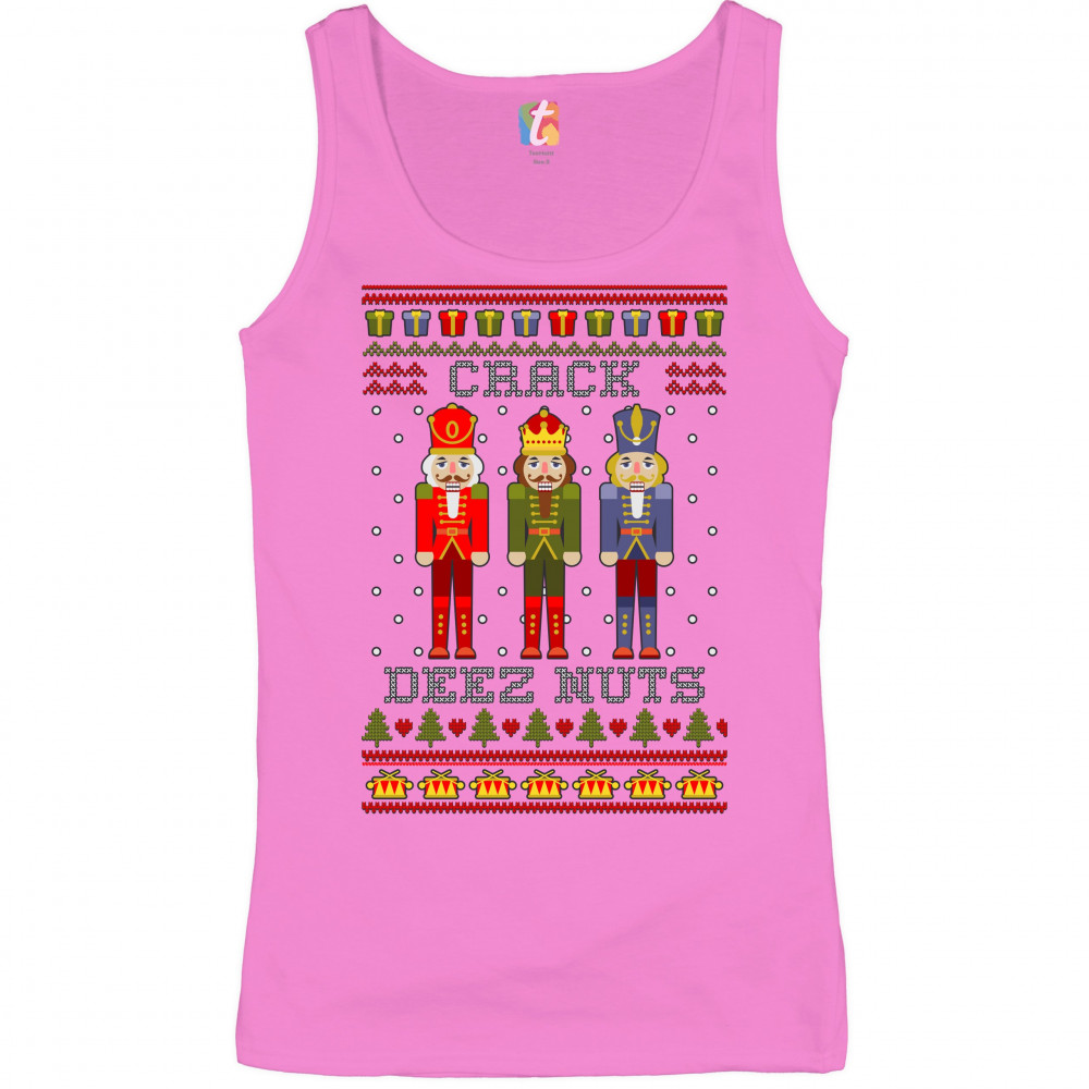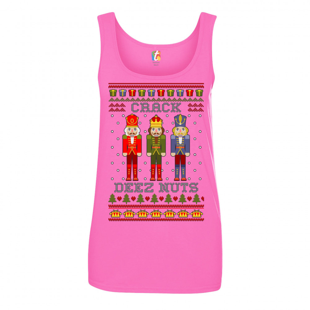 CRACK DEEZ NUTS women's tank top funny christmas nutcracker ugly sweater pink