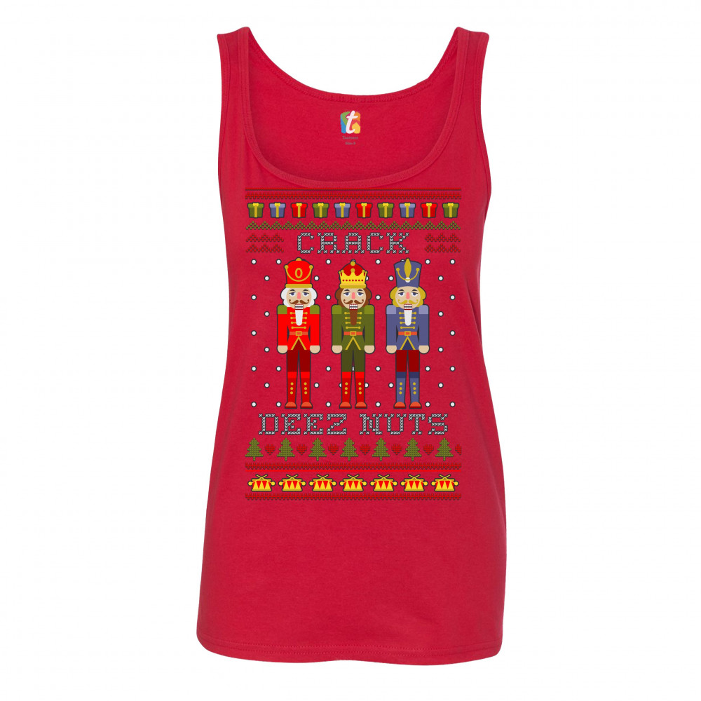 CRACK DEEZ NUTS women's tank top funny christmas nutcracker ugly sweater red