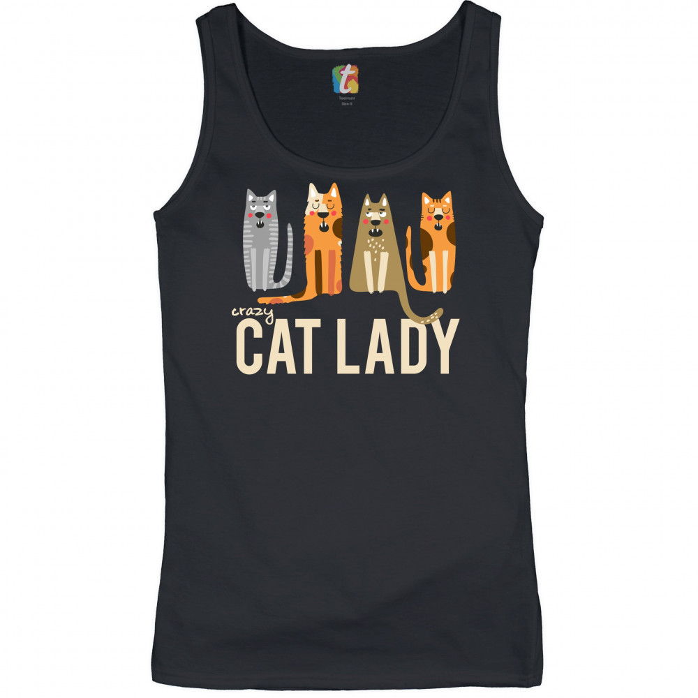 CRAZY CAT LADY women's tank top mother's day cat lover kitten kitty black