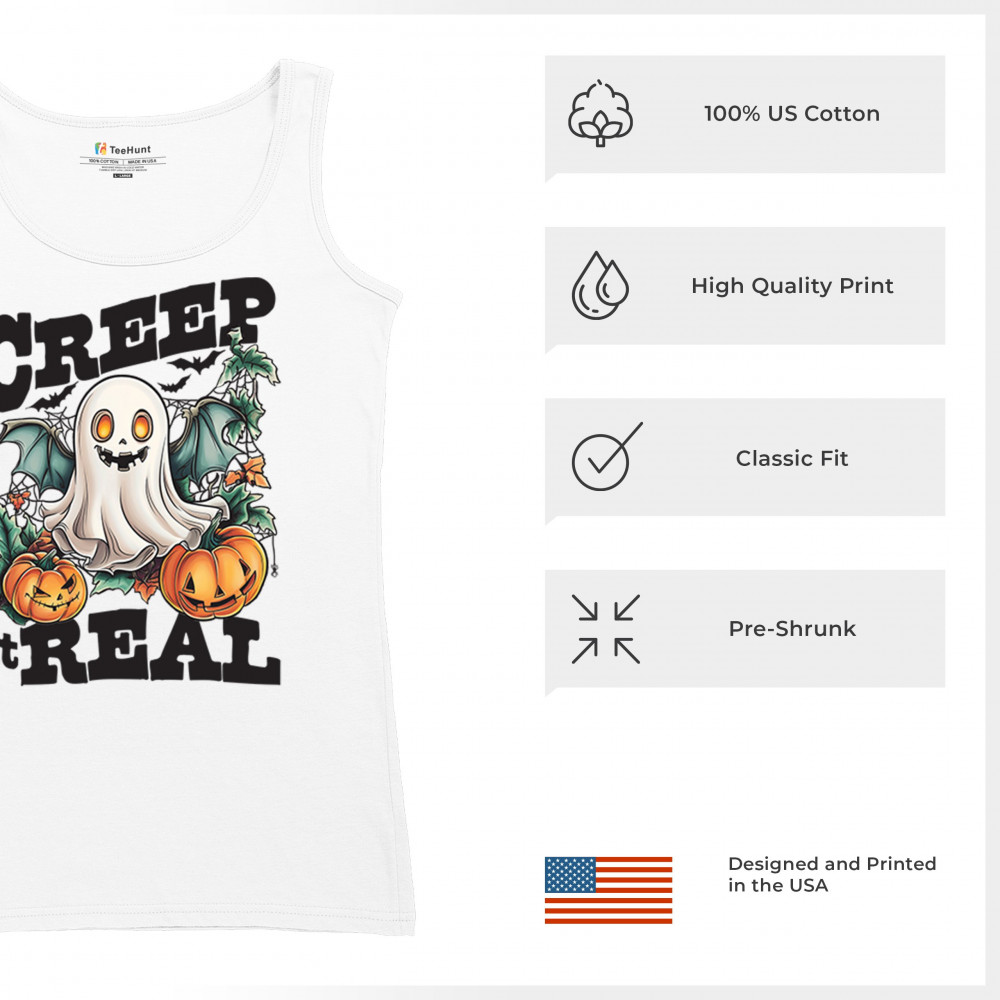 Celebrate Halloween with this playful "Creep It Real" ghost design, perfect for fall activities, pumpkin patches, and spooky parties!