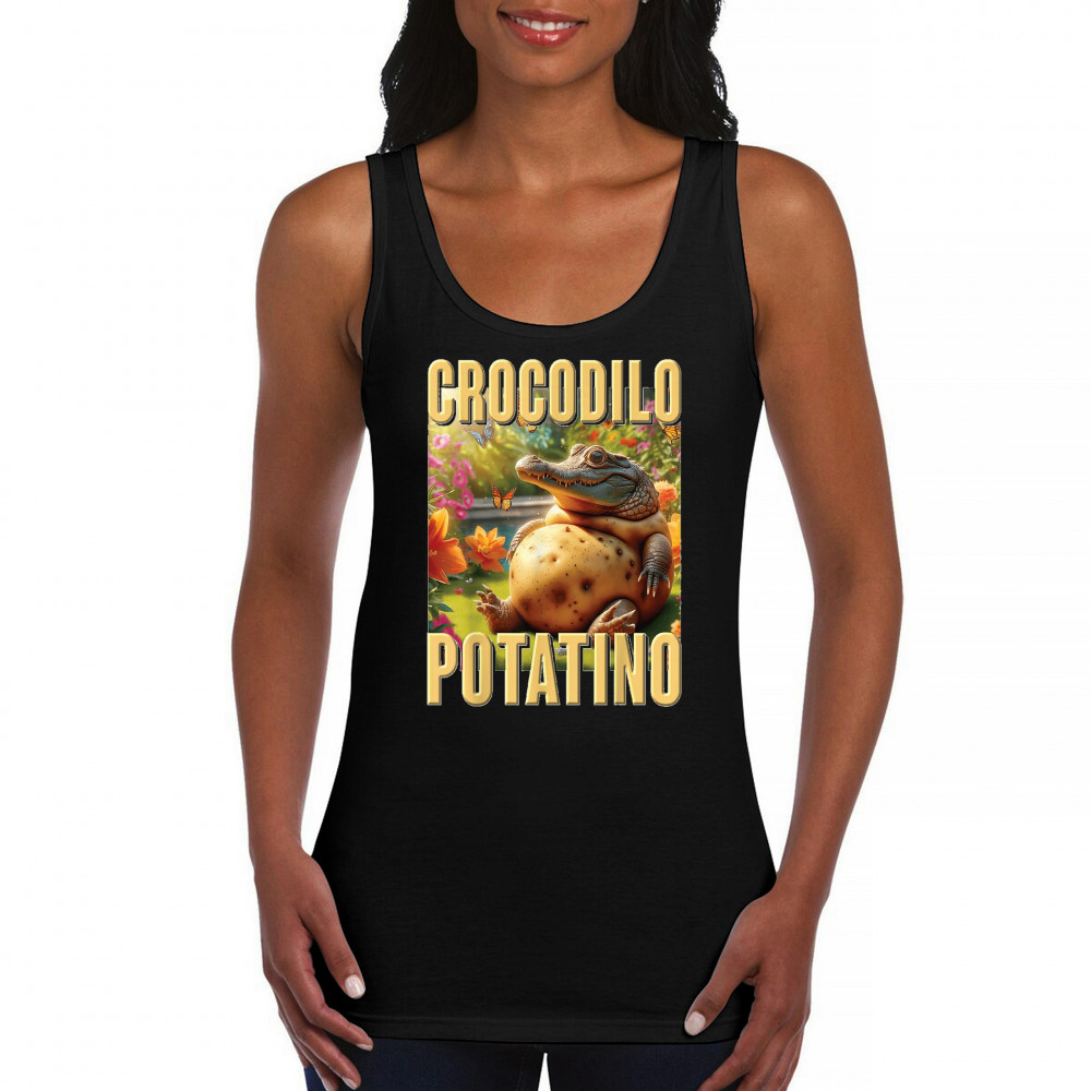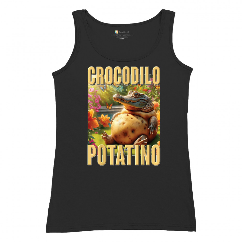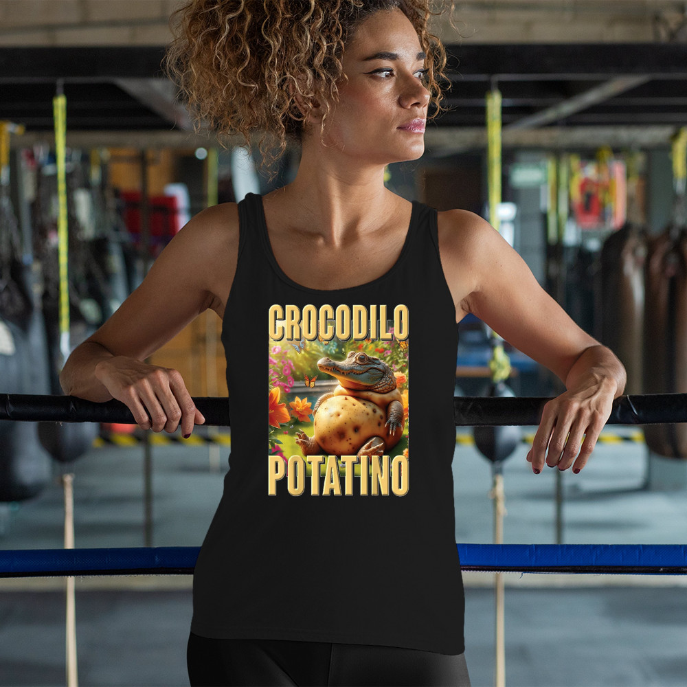CROCODILO POTATINO women's tank top fun italian brainrot gen z alpha meme black