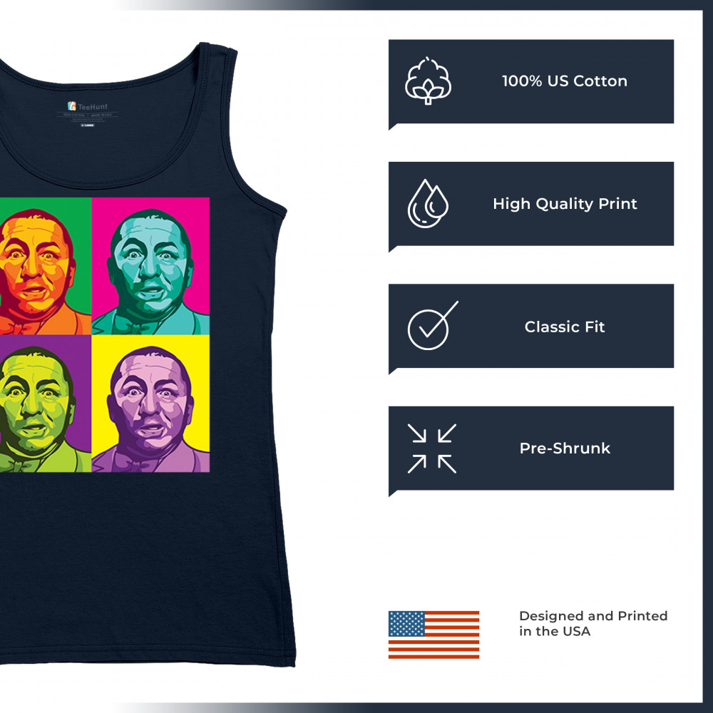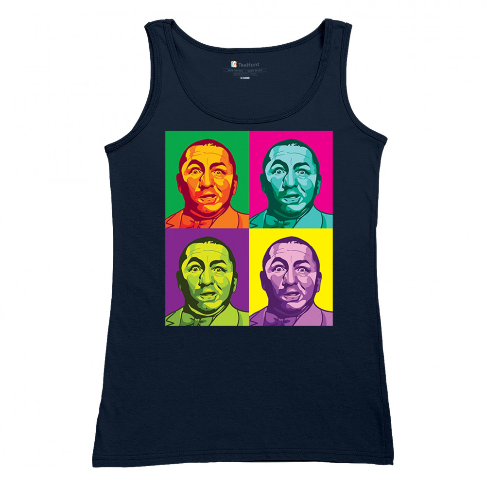 Introducing our dazzling pop art collection, headlined by the inimitable Curly of the Three Stooges! With a quartet of vivid hues, this T-shirt is a contemporary twist on classic humor. It's a standout piece for any fan's collection, capturing the timeless expression of Curly in a modern art style that's sure to turn heads and spark smiles.