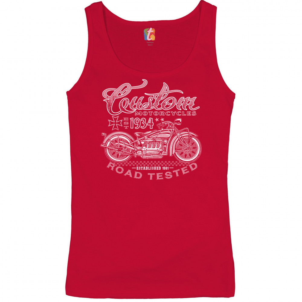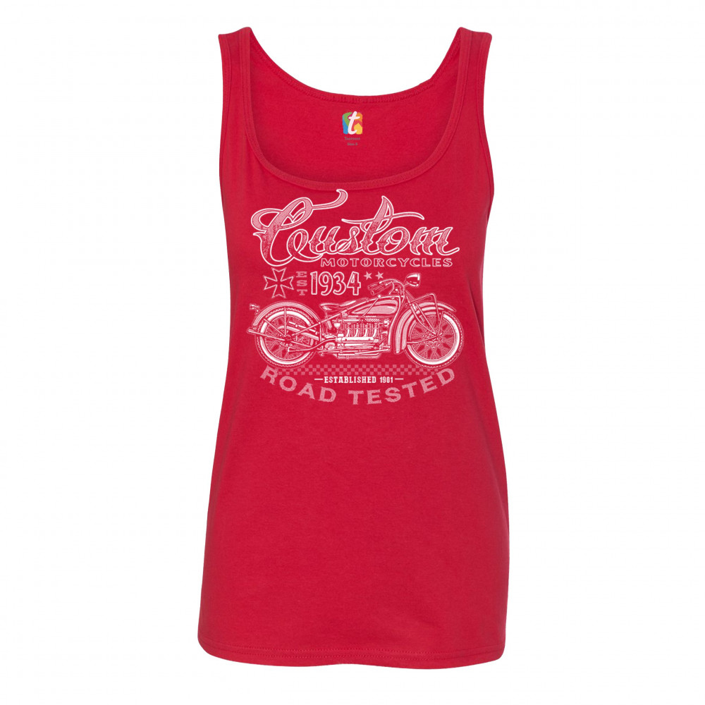 CUSTOM MOTORCYCLES ROAD TESTED women's tank top bobber biker gang mc red