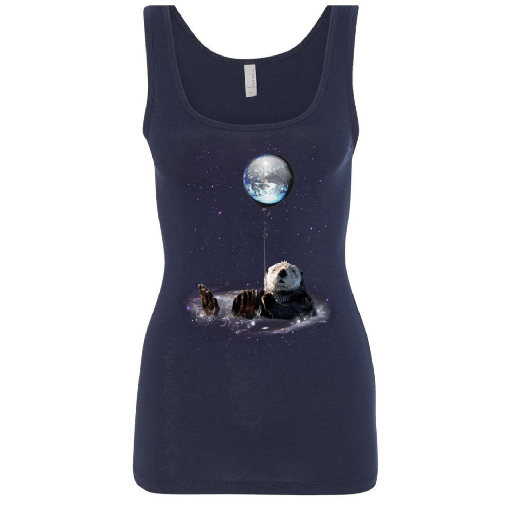 OTTER SPACE cute otter bathing in space women's tank top funny universe galaxy earth top navy blue