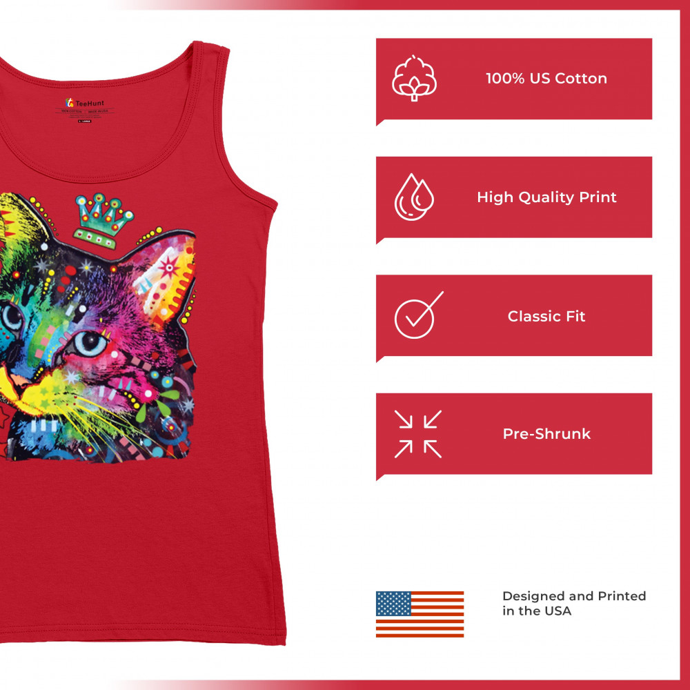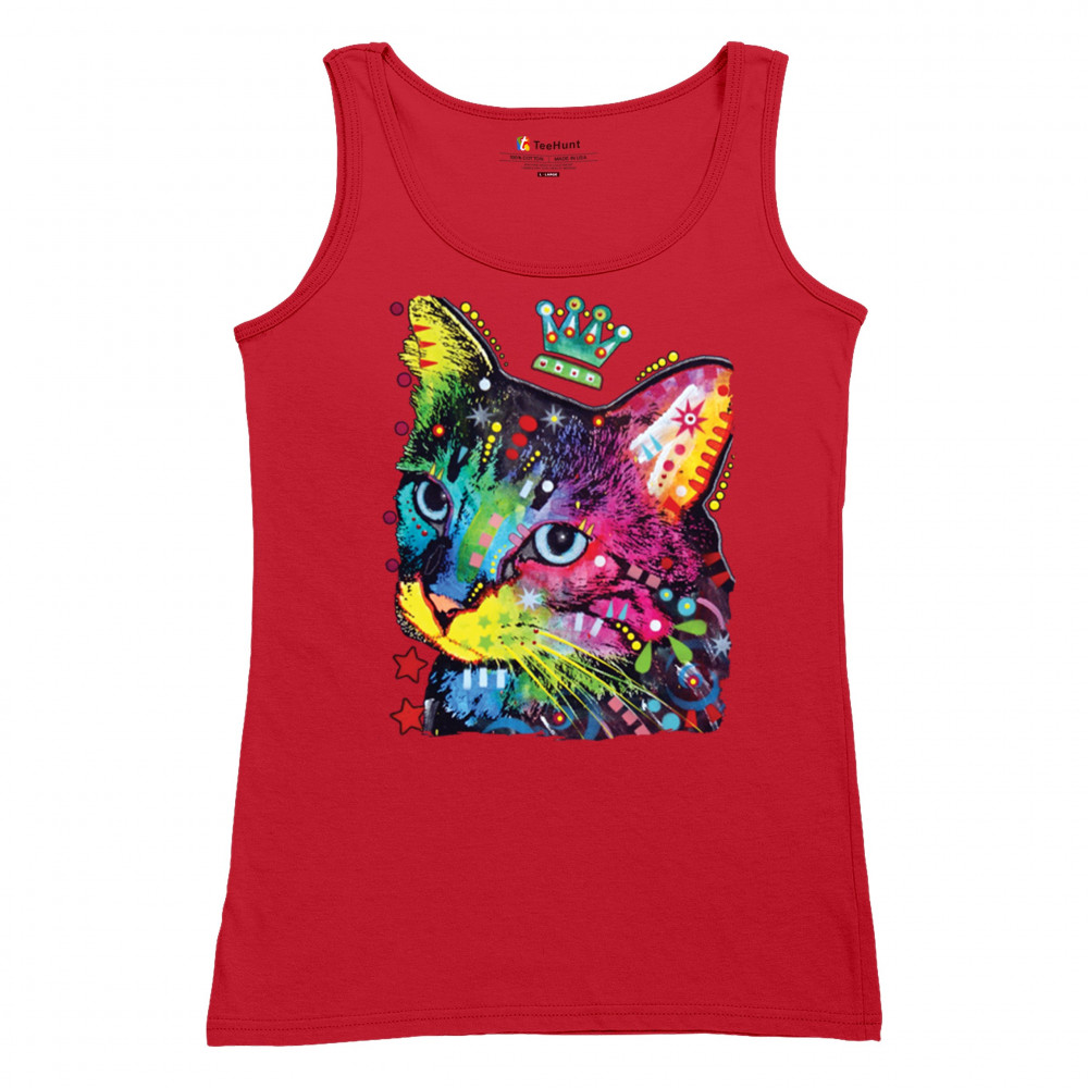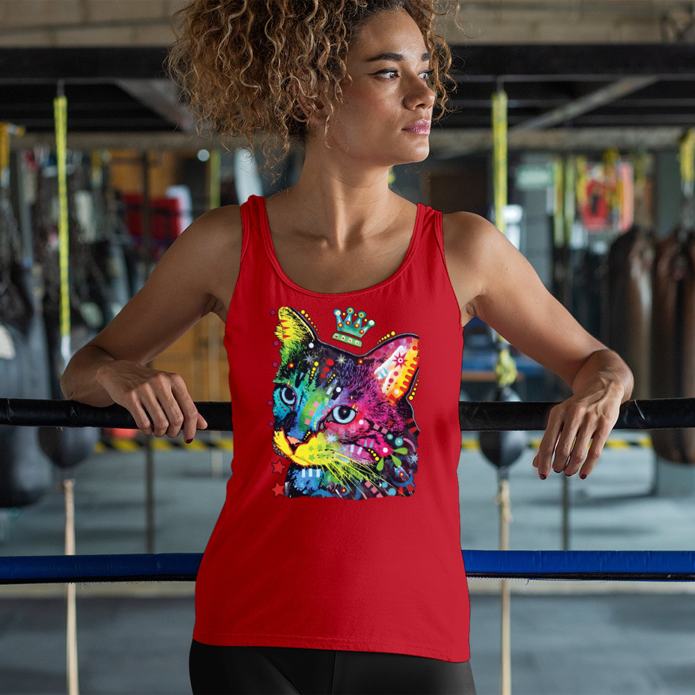 CUTE THINKING CROWNED CAT women's tank top dean russo colorful kitten red