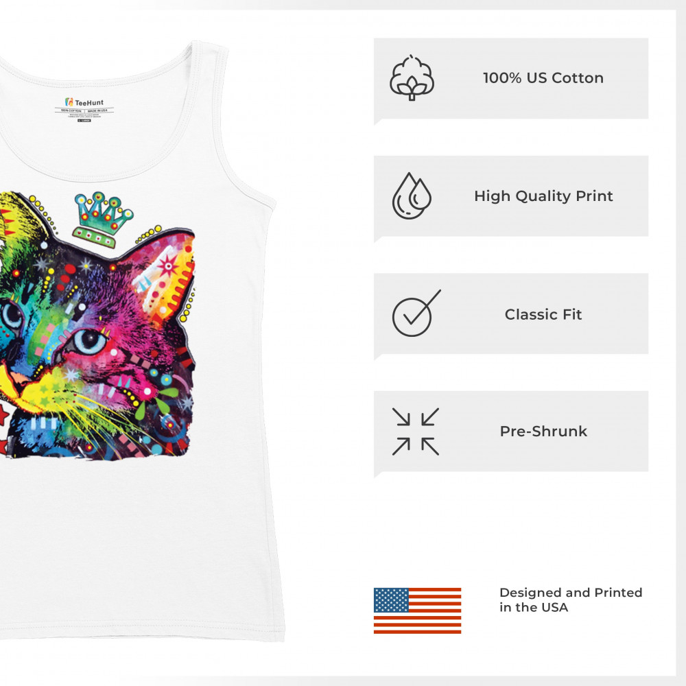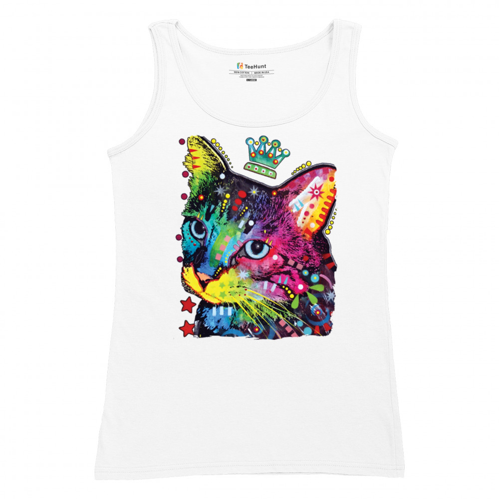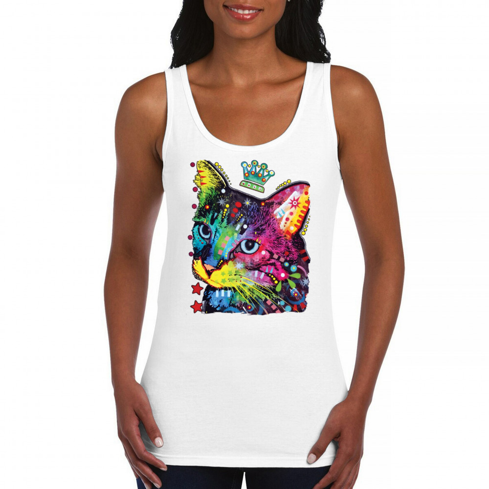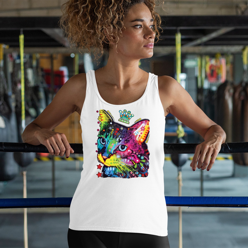 CUTE THINKING CROWNED CAT women's tank top dean russo colorful kitten white