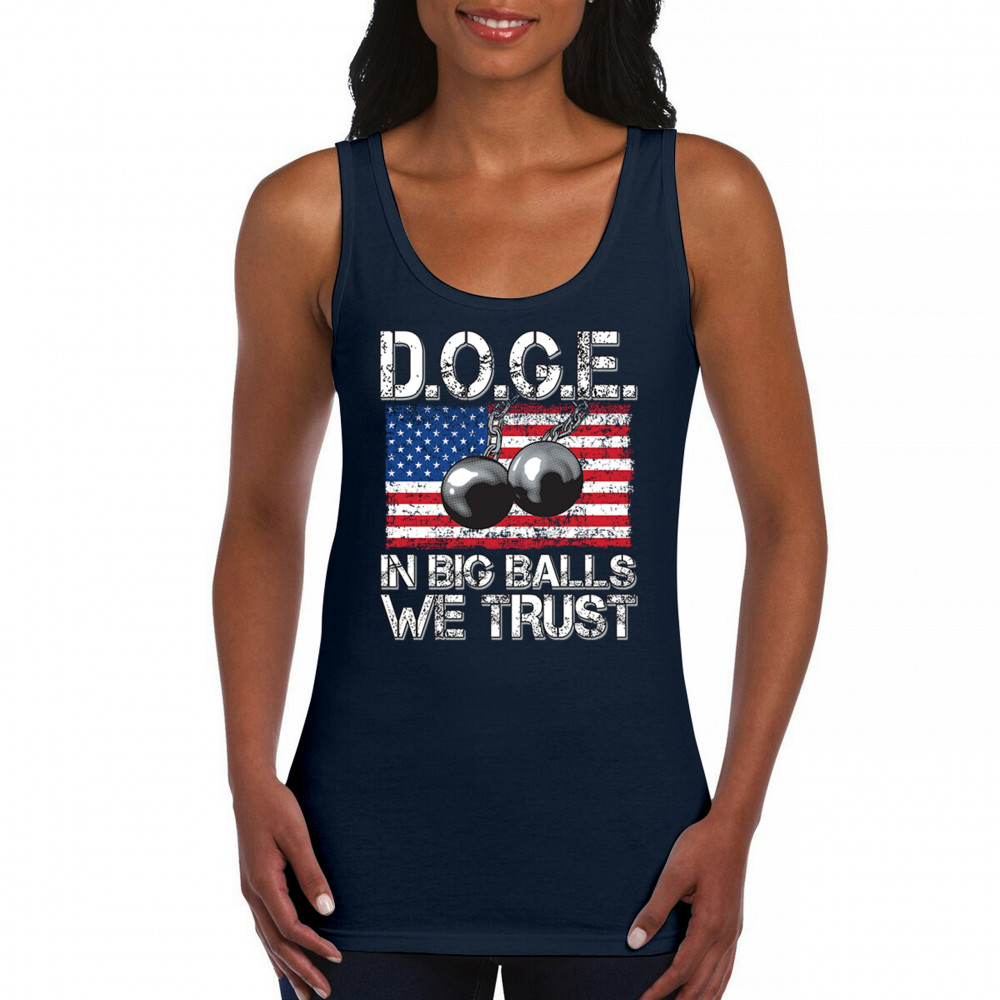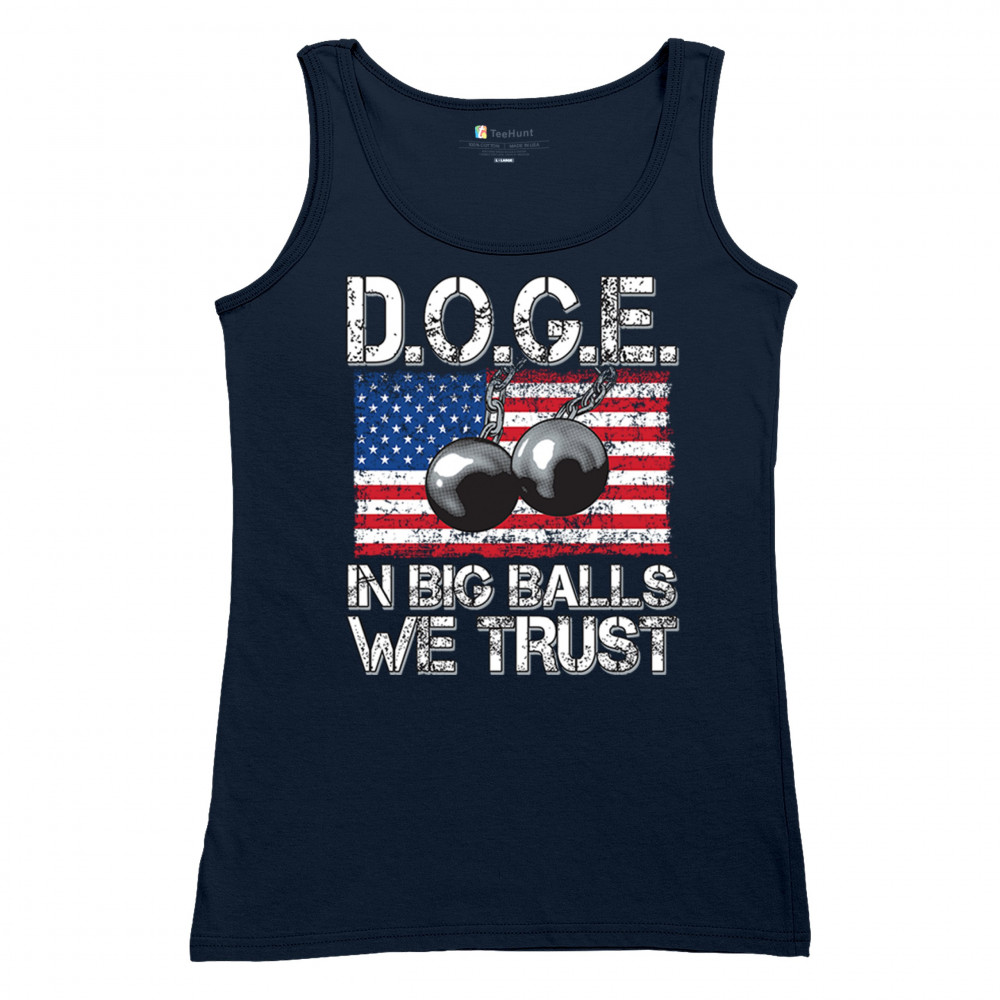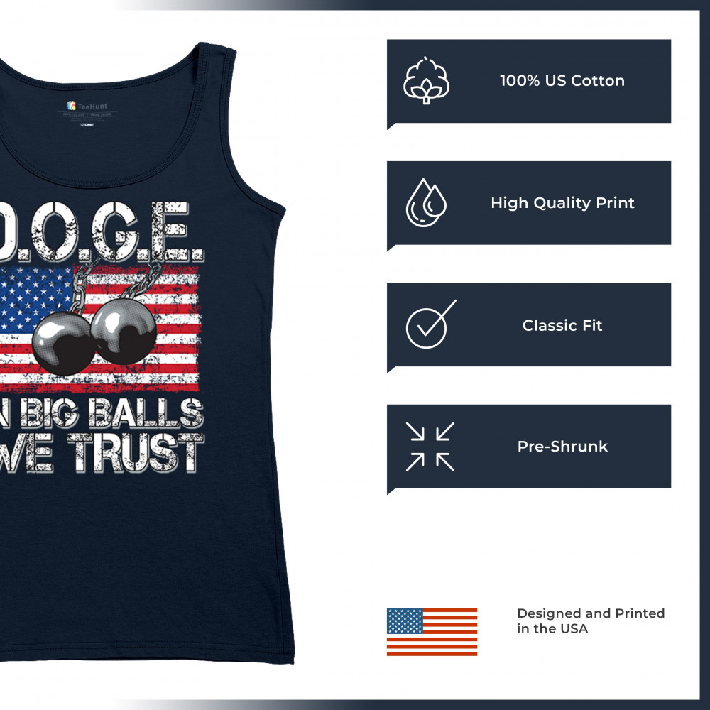 The D.O.G.E. In Big Balls We Trust design blends patriotic grit with sharp political satire. Featuring chained wrecking balls over a distressed American flag, this graphic hits hard. Perfect for conservative men, bold personalities, and political events like rallies, debates, and meetups.