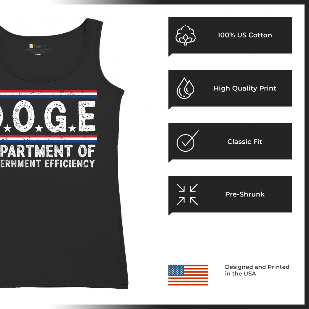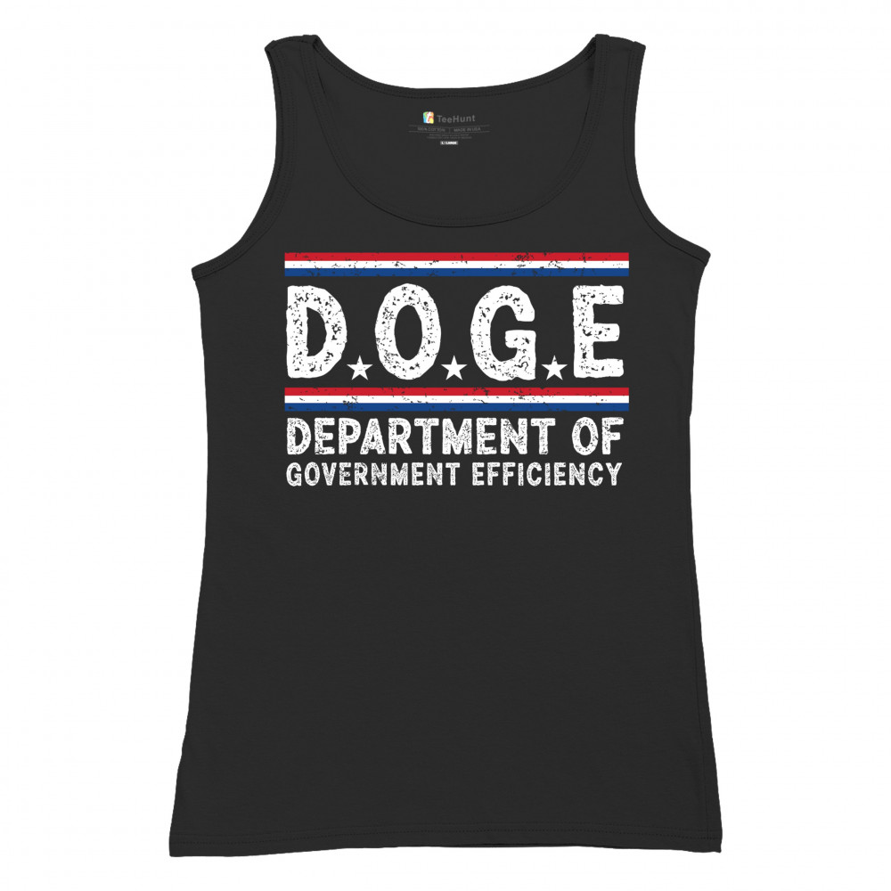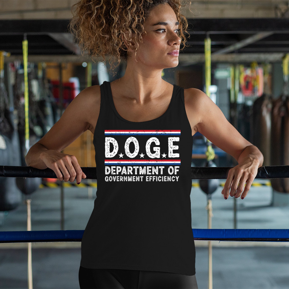 The D.O.G.E. – Department of Government Efficiency design features distressed bold text, stars, and stripes in patriotic red, white, and blue. Combining political parody with classic Americana flair, it’s perfect for conservatives, libertarians, and anyone critical of big government. Great for protests, events, or just everyday bold statements.
