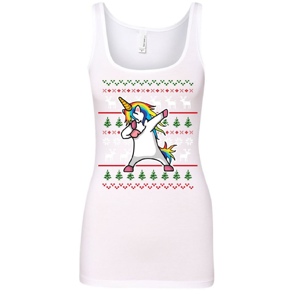 DABBING UNICORN ugly sweater women's tank top christmas xmas dab rudolph top white