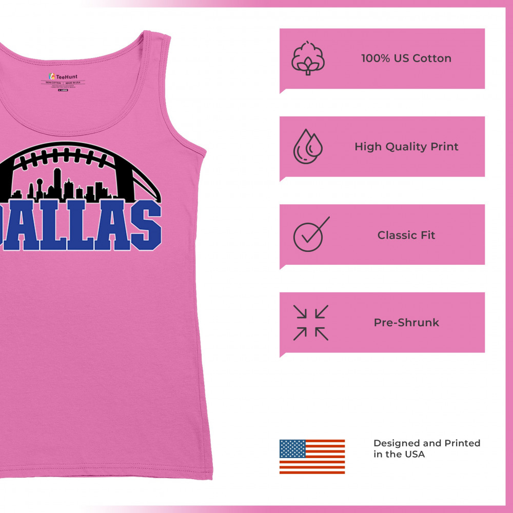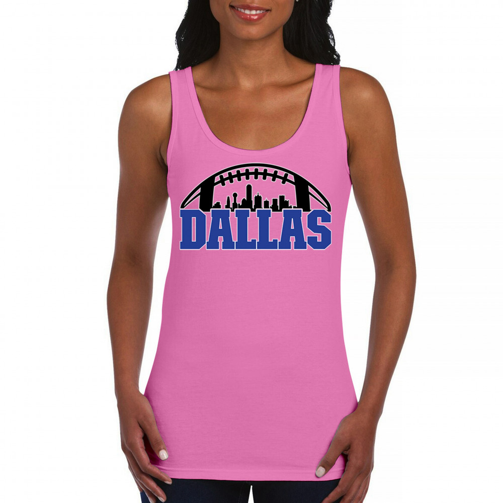 Show off your Dallas pride with a bold football-themed design featuring the city's skyline. Perfect for game days, tailgates, and passionate fans.