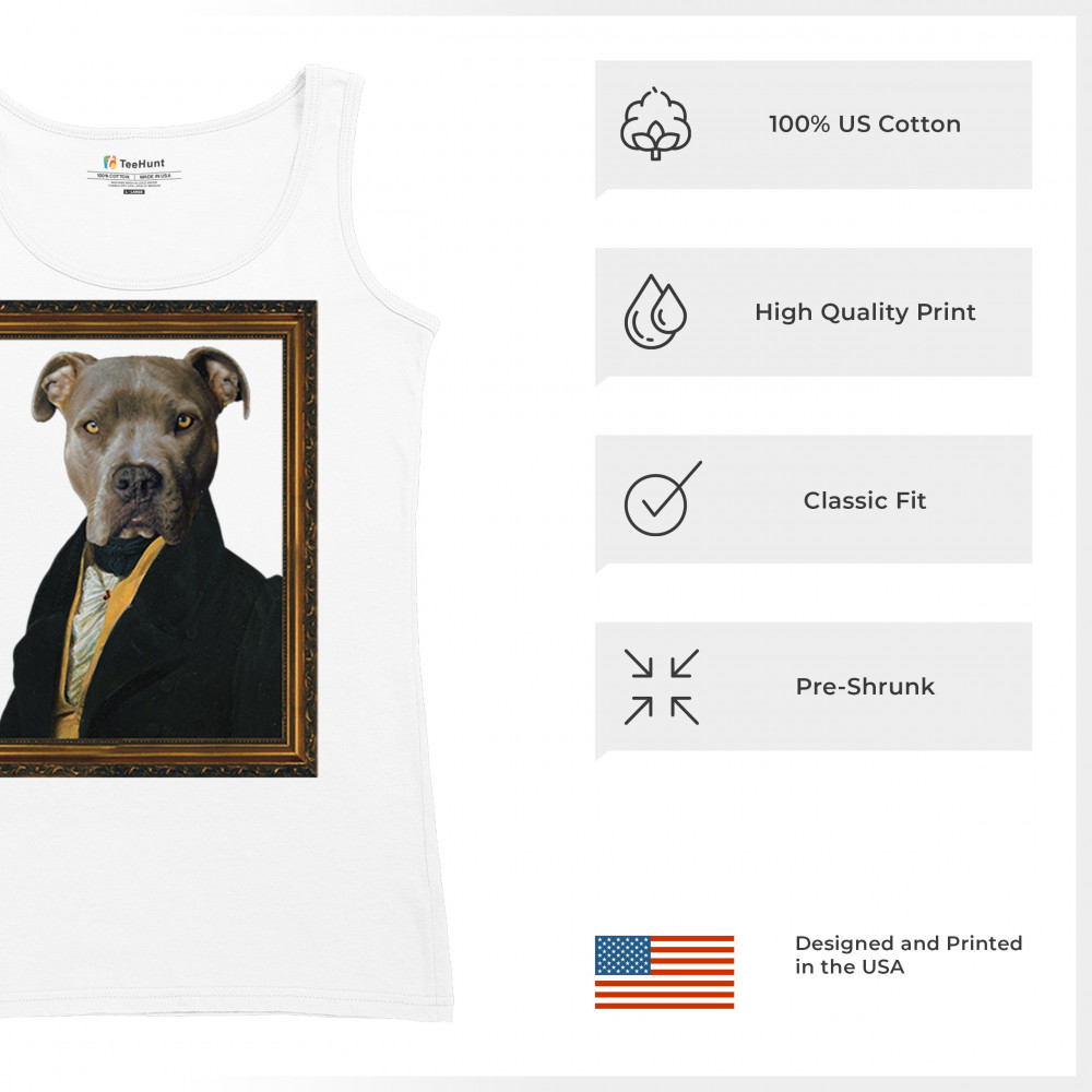 Add a touch of humor and class to your decor with our pit bull portrait in 18th-century attire. This delightful design merges the playful charm of pit bulls with the sophisticated style of historical portraits. Perfect for pet lovers and history buffs alike, it brings a unique and artistic flair to any space. Available in various sizes and printed on high-quality material, this portrait promises lasting appeal and enjoyment. It also makes a thoughtful gift for friends and family who appreciate quirky and artistic home decor.